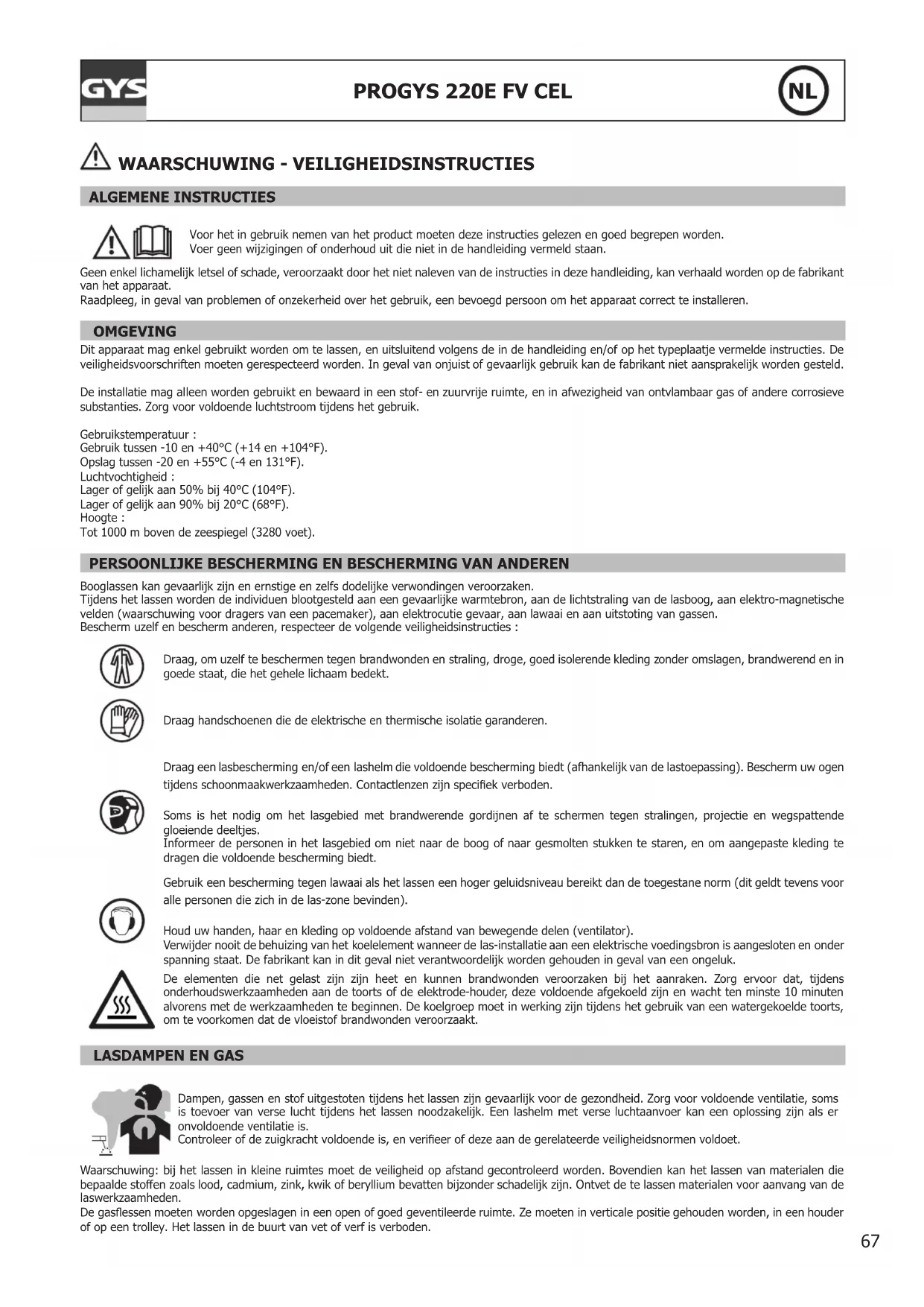 GEBRUIKSAANWIJZING Progys 220E FV CEL GYS