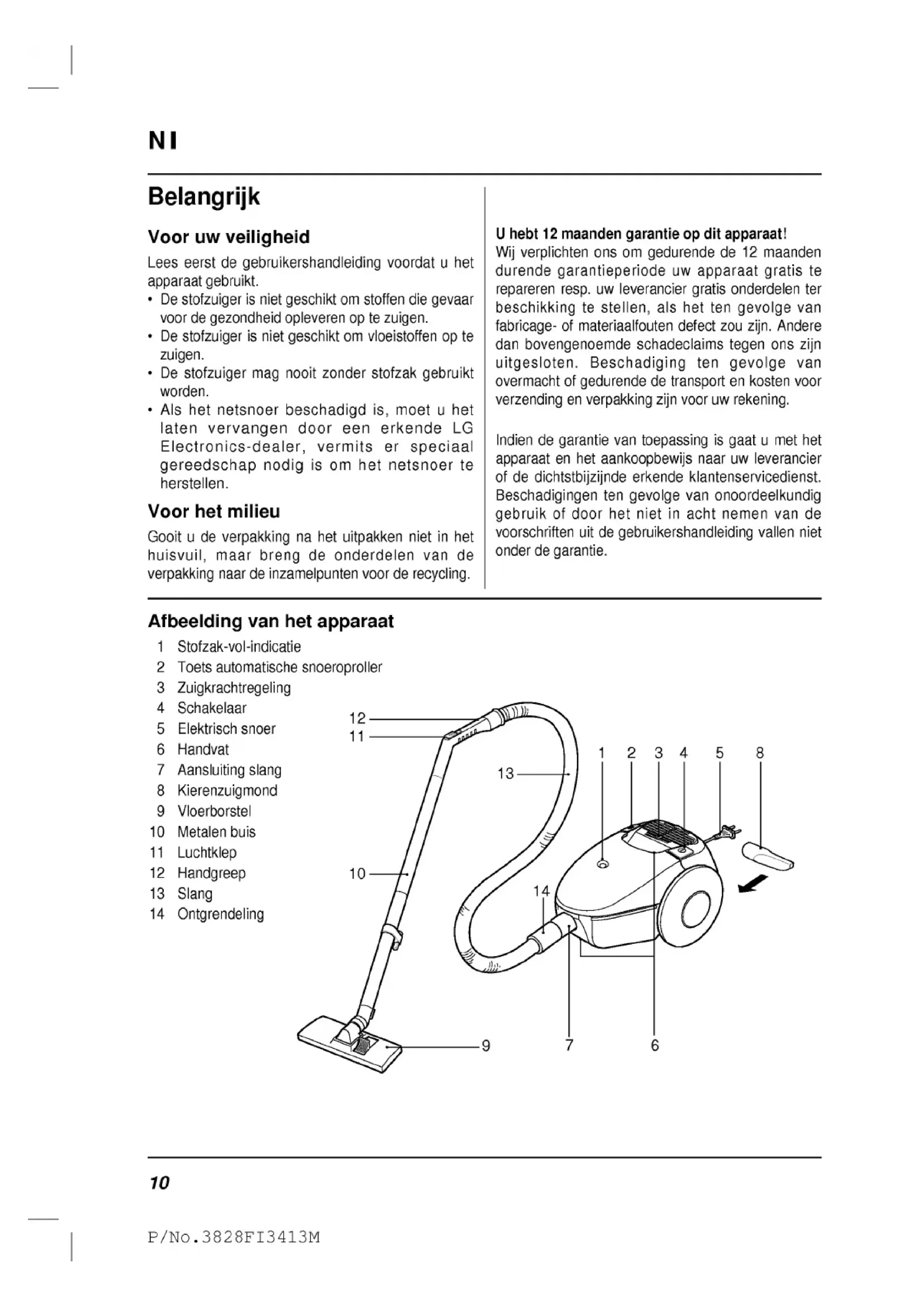Omdegarantieaan spreken moet uzichwenden tot uwhandelaarofeengeautoriseerdservicecenter. Andereaansprakenzijnuitgesloten!Indiendelenvandezebepalingenongeldigzijn,dangeldenzenaarinhoud.Degeldigheidvandeanderebepa-lingenwordthierdoornietbeinvloed. Garantievoorwaarden voor stofzuiger22 P/No.3828FI3413M