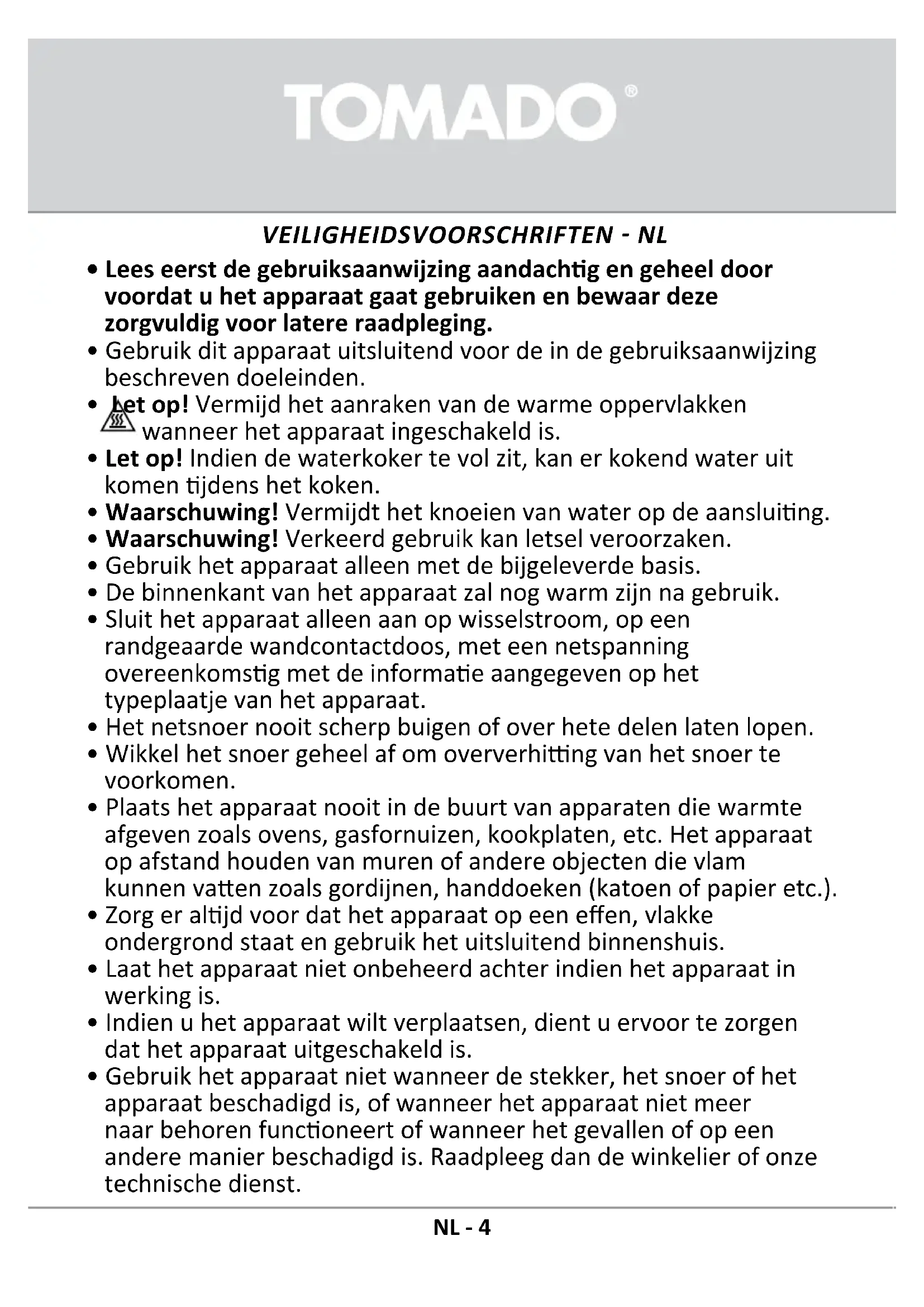 GEBRUIKSAANWIJZING TWK1705B Tomado