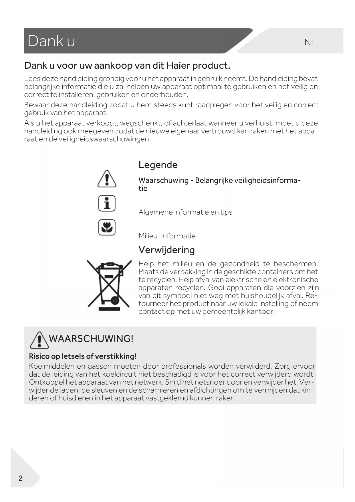 Dank u voor uw aankoop van dit Haier product.