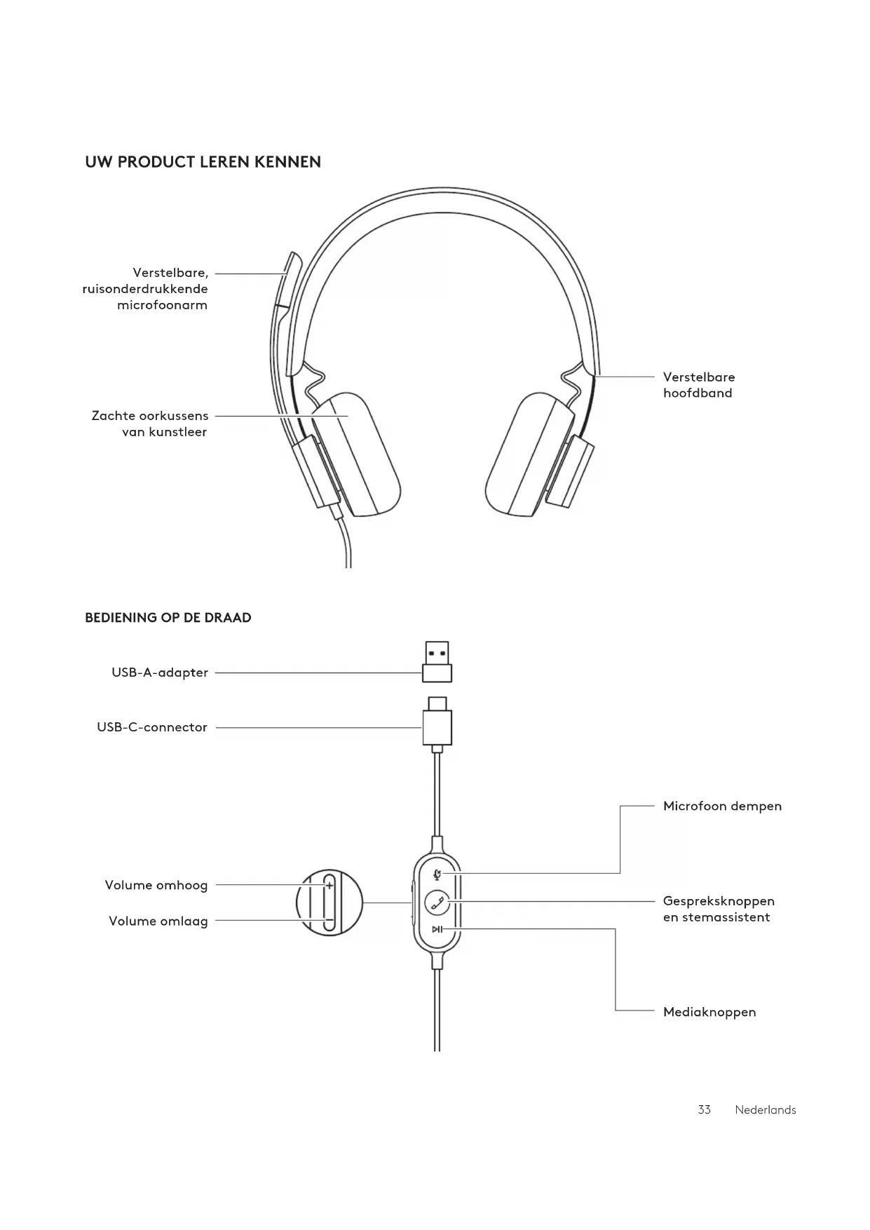 vanuw computer. Opmerking: gebruik de USB-A-adapter alleen met demeegeleverde headset.