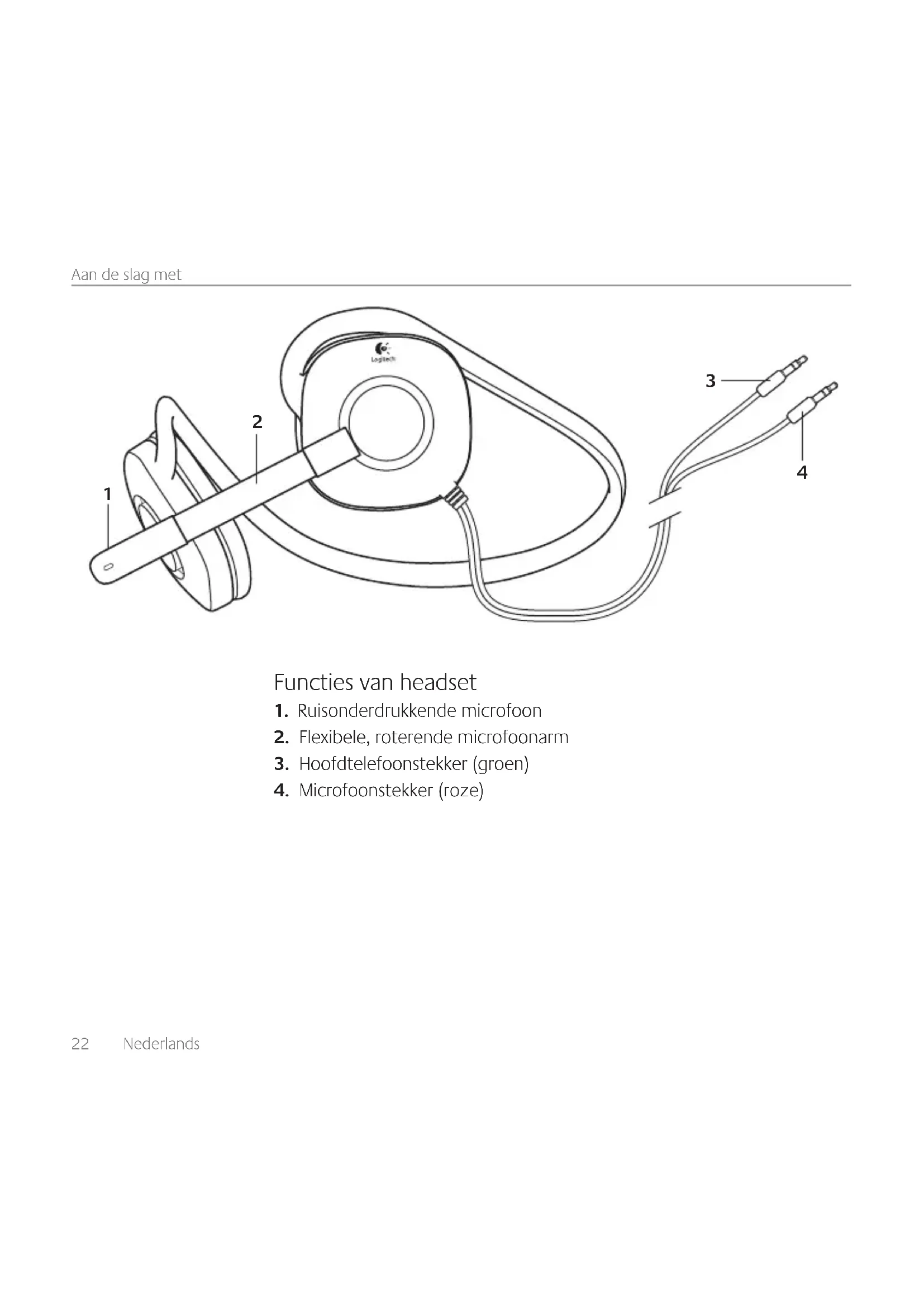 De headset aansluiten24 Nederlands Aan de slag met