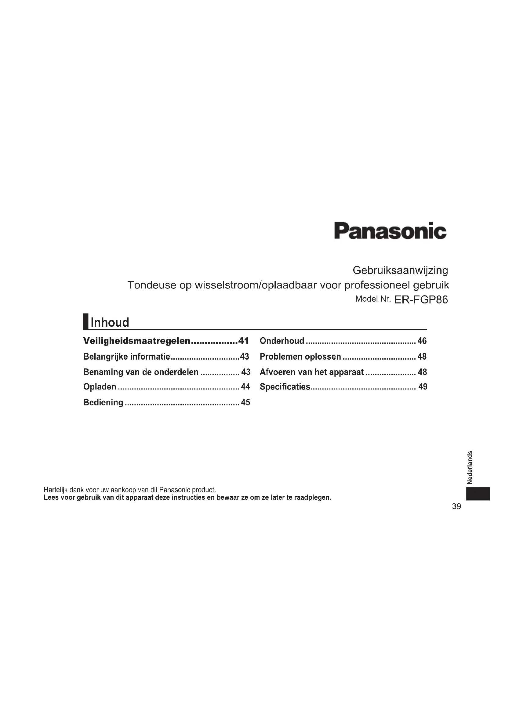 GEBRUIKSAANWIJZING ERFGP86 PANASONIC