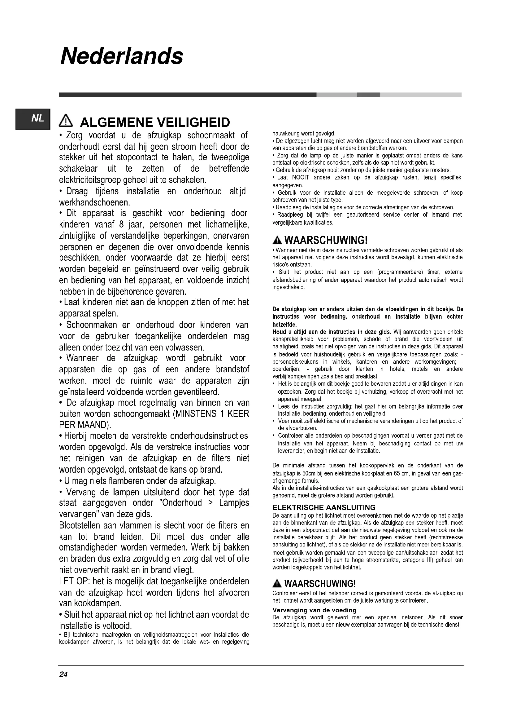 - Laat NOOIT andere zaken op de afzuigkap rusten, tenzij specifiek aangegeven.