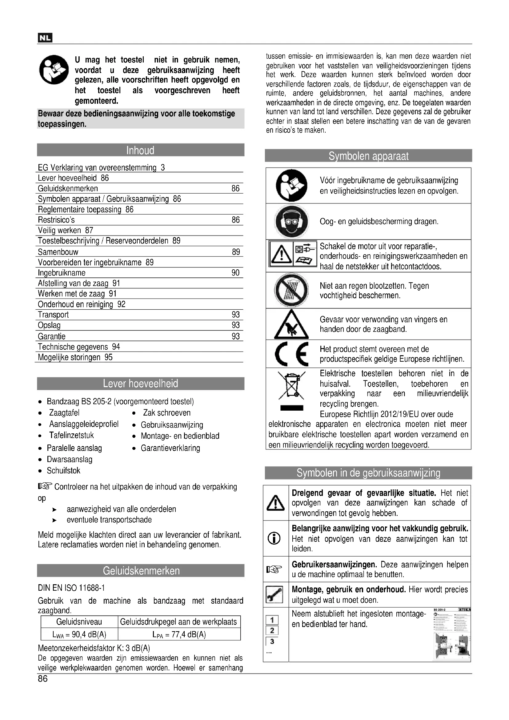 Download de handleiding voor uw Zaag in PDF-formaat gratis! Vind uw handleiding BS 2052 - ATIKA en neem uw elektronisch apparaat weer in handen. Op deze pagina staan alle documenten die nodig zijn voor het gebruik van uw apparaat. BS 2052 van het merk ATIKA.