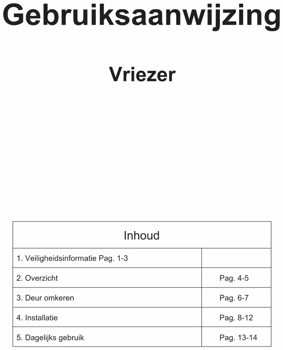 - plaats de stekker weer in het stopcontact om het apparaat weer te gebruiken. 1 Als de condensator aan de achterkant van het apparaat zit. 12Dagelijks gebruik Problemen oplossen Let op Trek de stekker uit het stopcontact voordat u problemen probeert op te lossen. Het oplossen van problemen die niet in deze handleiding beschreven staan, mag alleen worden uitgevoerd door een erkende elektricien of deskundig persoon. Belangrijk Tijdens normaal gebruik kunt u geluiden horen (compressor, circulatie van koelmiddel). Probleem Mogelijke oorzaak Oplossing Het apparaat werkt niet De stekker zit niet in het stopcontact of zit los Steek de stekker in het stopcontact. De zekering is gesprongen of is defect Controleer de zekering en vervang hem indien nodig Het stopcontact is defect Storingen in de netvoeding moeten worden opgelost door een elektricien. Het apparaat vriest te hard De temperatuur is te koud ingesteld of het apparaat werkt op stand MAX. Draai de temperatuurregeling tijdelijk naar een warmere stand. Het voedsel is niet genoeg bevroren. De temperatuur is niet goed ingesteld. Lees de paragraaf Instellen van de temperatuur. De deur is gedurende langere tijd open geweest. Open de deur alleen zo lang als nodig is. Er is een grote hoeveelheid voedsel in de vriezer gelegd in de afgelopen 24 uur. Draai de temperatuurregeling tijdelijk naar een koudere stand. Het apparaat staat in de buurt van een warmtebron. Lees de paragraaf Installatie - Locatie. Dikke ijslaag op de deurafdichting. De deurafdichting sluit niet hermetisch. Verwarm de lekkende gedeelten van de deurafdichting voorzichtig met een haardroger (op een koude stand). Vorm de verwarmde deurafdichting tegelijk met de hand zodat deze correct aansluit. Ongewone geluiden Het apparaat staat niet waterpas. Stel de voetjes af. Het apparaat raakt de muur of andere voorwerpen. Verplaats het apparaat iets. Een onderdeel, bijvoorbeeld een leiding aan de achterkant van het apparaat, raakt een ander onderdeel van het apparaat of de muur. Buig het onderdeel indien mogelijk voorzichtig weg. Als de storing opnieuw optreedt, neem dan contact op met de Klantenservice. Deze gegevens zijn nodig om u snel en goed te kunnen helpen. Noteer de benodigde gegevens hier, zie het typeplaatje. 13Dagelijks gebruik GARANTIE Minimumgarantie is: 2 jaar voor EU-landen, 3 jaar voor Turkije, 1 jaar voor het Verenigd Koninkrijk, 1 jaar voor Rusland, 3 jaar voor Zweden, 2 jaar voor Servië, 5 jaar voor Noorwegen, 1 jaar voor Marokko, 6 maanden voor Algerije, Tunesië geen wettelijke garantie vereist.