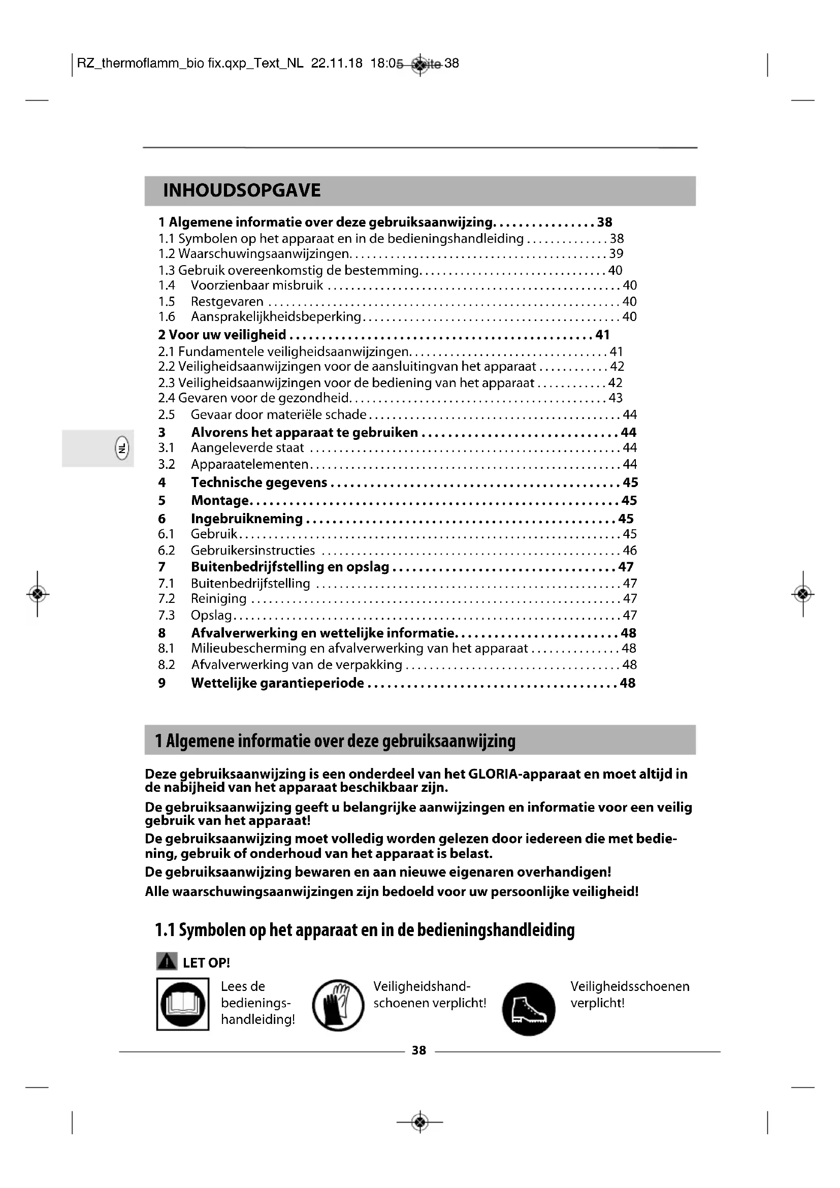 INHOUDSOPGAVE 1 Algemene informatie over deze gebruiksaanwijzing. . . . . . . . . . . . . . . . 38