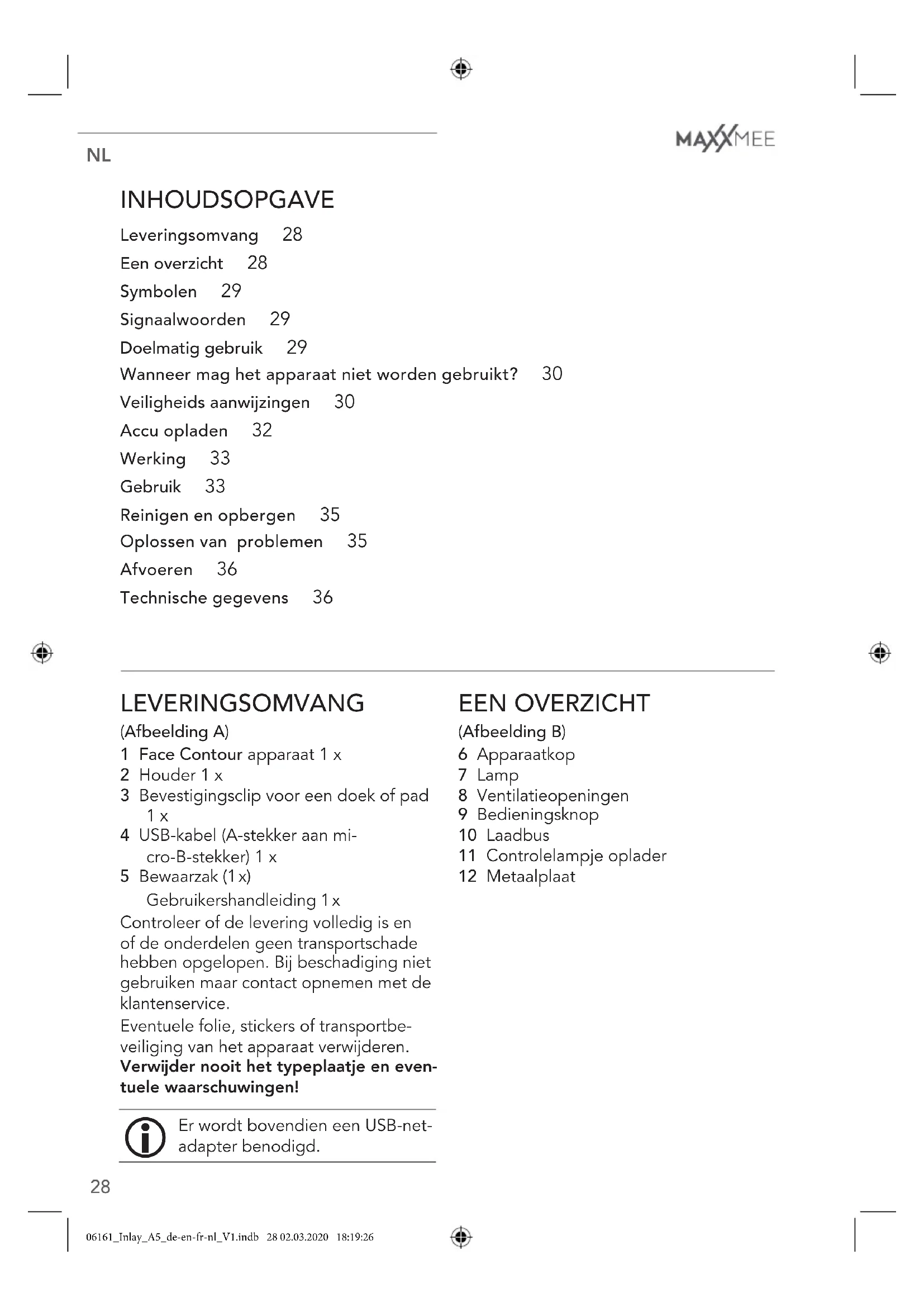 Wij danken je dat je hebt gekozen voor de aankoop van MAXXMEE Face Contour. Dit apparaat ondersteunt je bij de definitie van je gezichtscontouren alsook het verstevigen van de huid in het gezicht, bij de hals en decolleté. Gebruik het vooral op gespannen, geirriteerde of slappe huid.