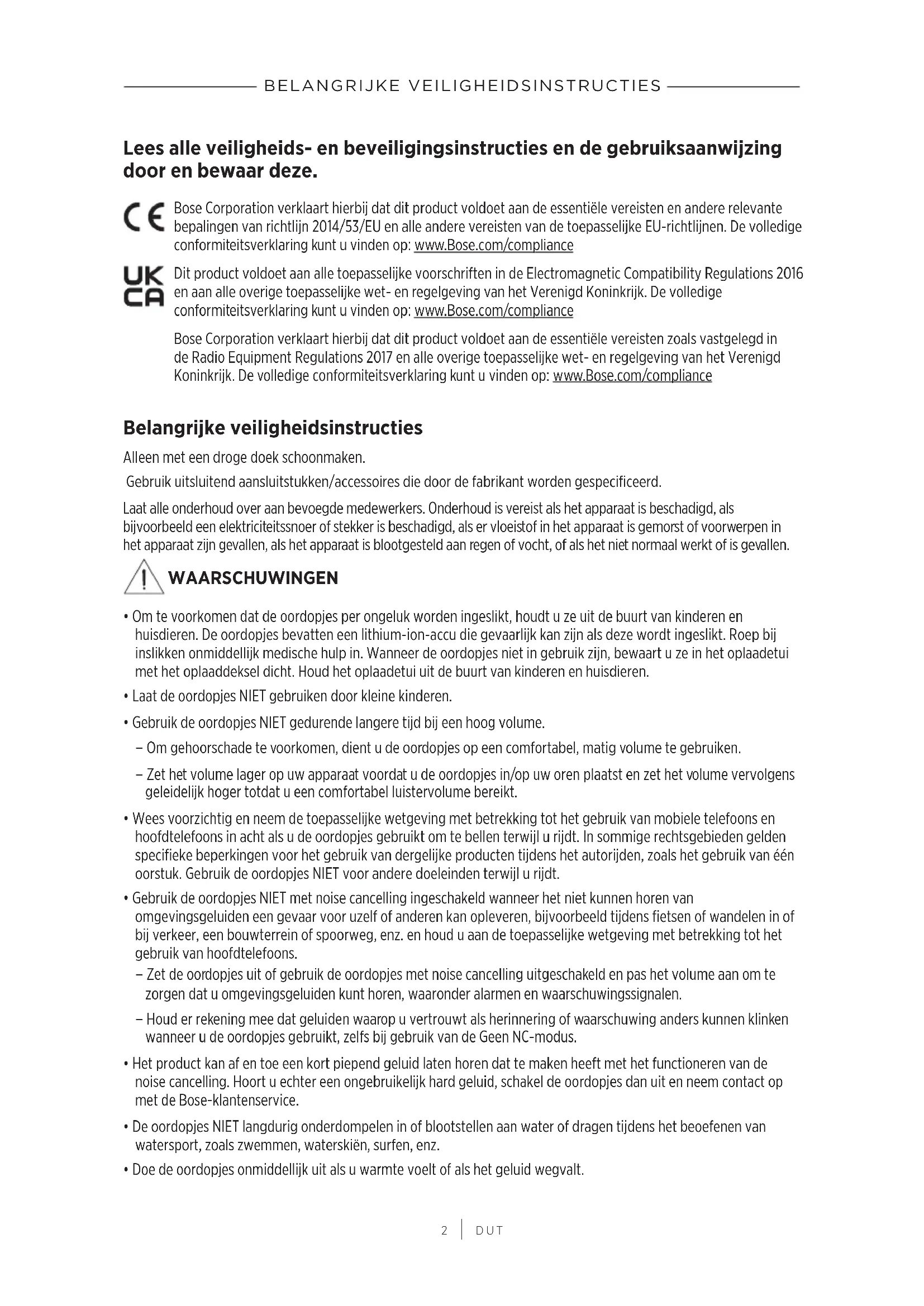 Bose Corporation verkaart hierbij dat dit product voldoet aan de essentiele vereisten zoals vastgelegd in de Radio Equipment Regulations 2017 en alle overige toepasselijkke wet- en regelgeving van het Verenigd Koninkrijk. De volledige conformiteitsverklaring kut u vinden op: www.Bose.com/compliance
