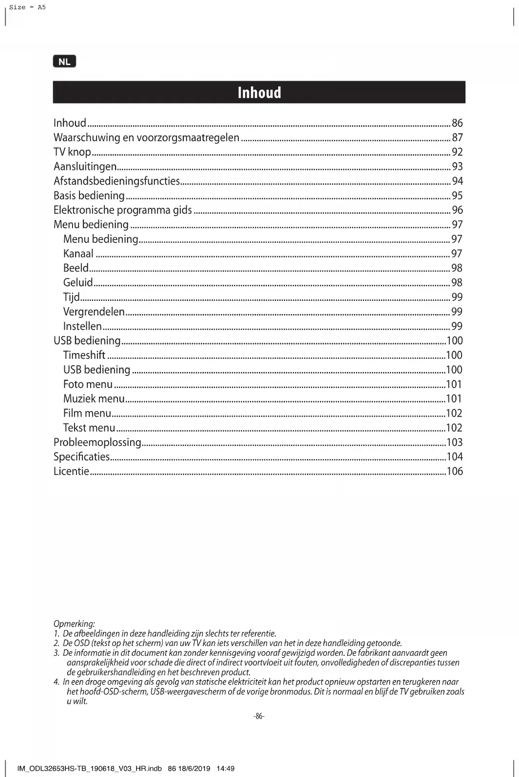 het hoofd-OSD-scherm, USB-weergavescherm of de vorige bronmodus. Dit is normaal en blijf de TV gebruiken zoals u wilt. IM_ODL32653HS-TB_190618_V03_HR.indb 86 18/6/2019 14:49-87-