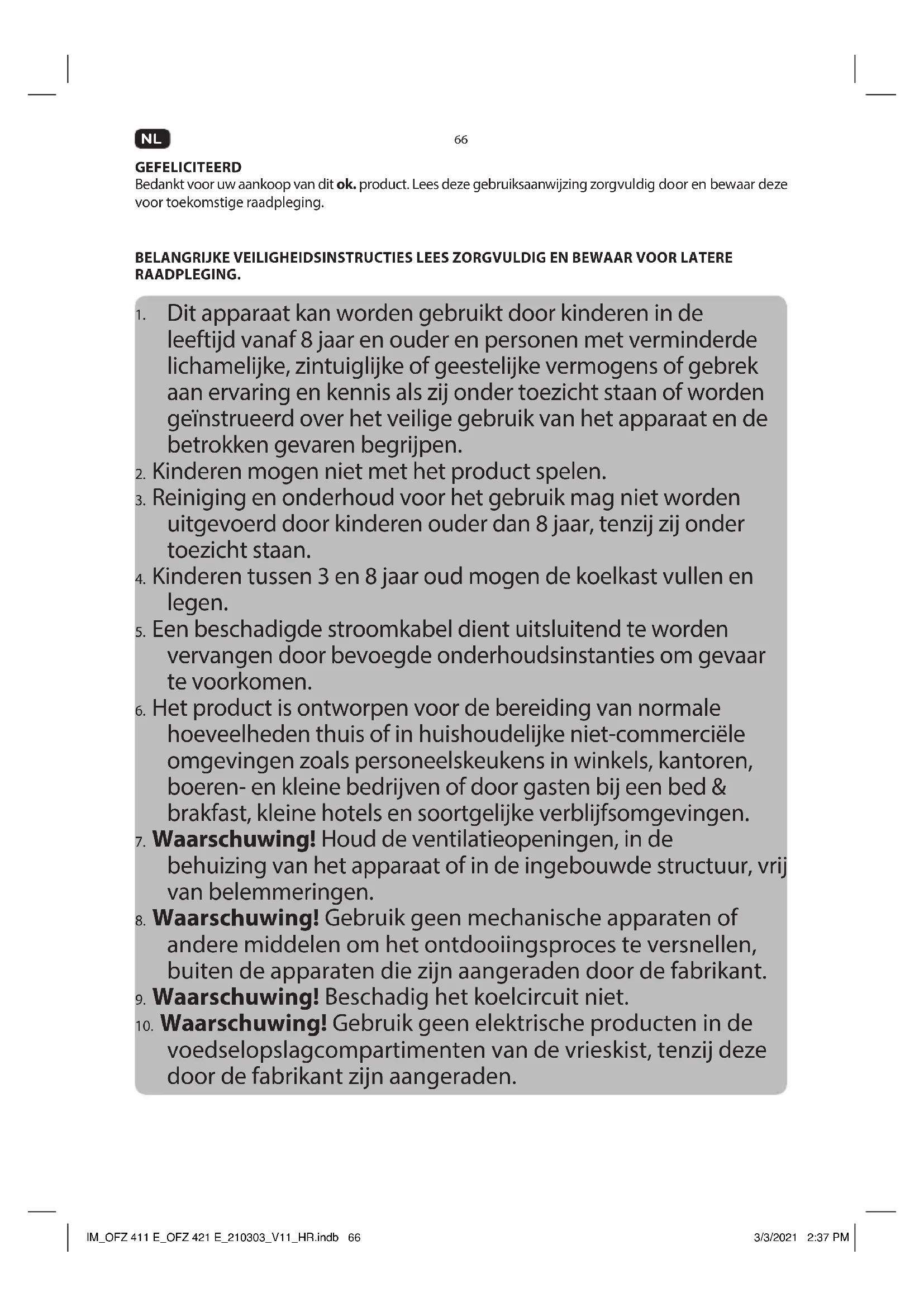 voedselopslagcompartimenten van de vrieskist, tenzij deze door de fabrikant zijn aangeraden. IM_OFZ 411 E_OFZ 421 E_210303_V11_HR.indb 66IM_OFZ 411 E_OFZ 421 E_210303_V11_HR.indb 66 3/3/2021 2:37 PM3/3/2021 2:37 PM67