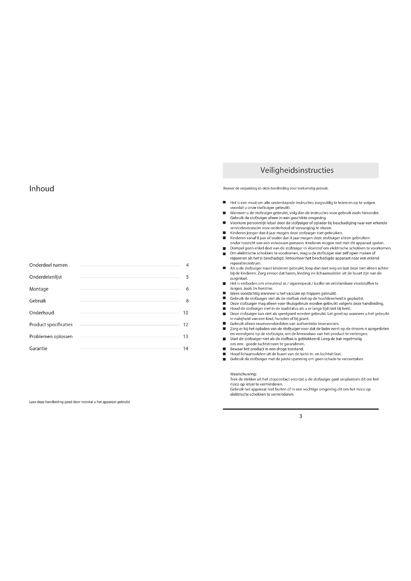 Handleiding JAMES 2.0 STEELSTOFZUIGER Model No.: STS08ZVeiligheidsinstructies Inhoud