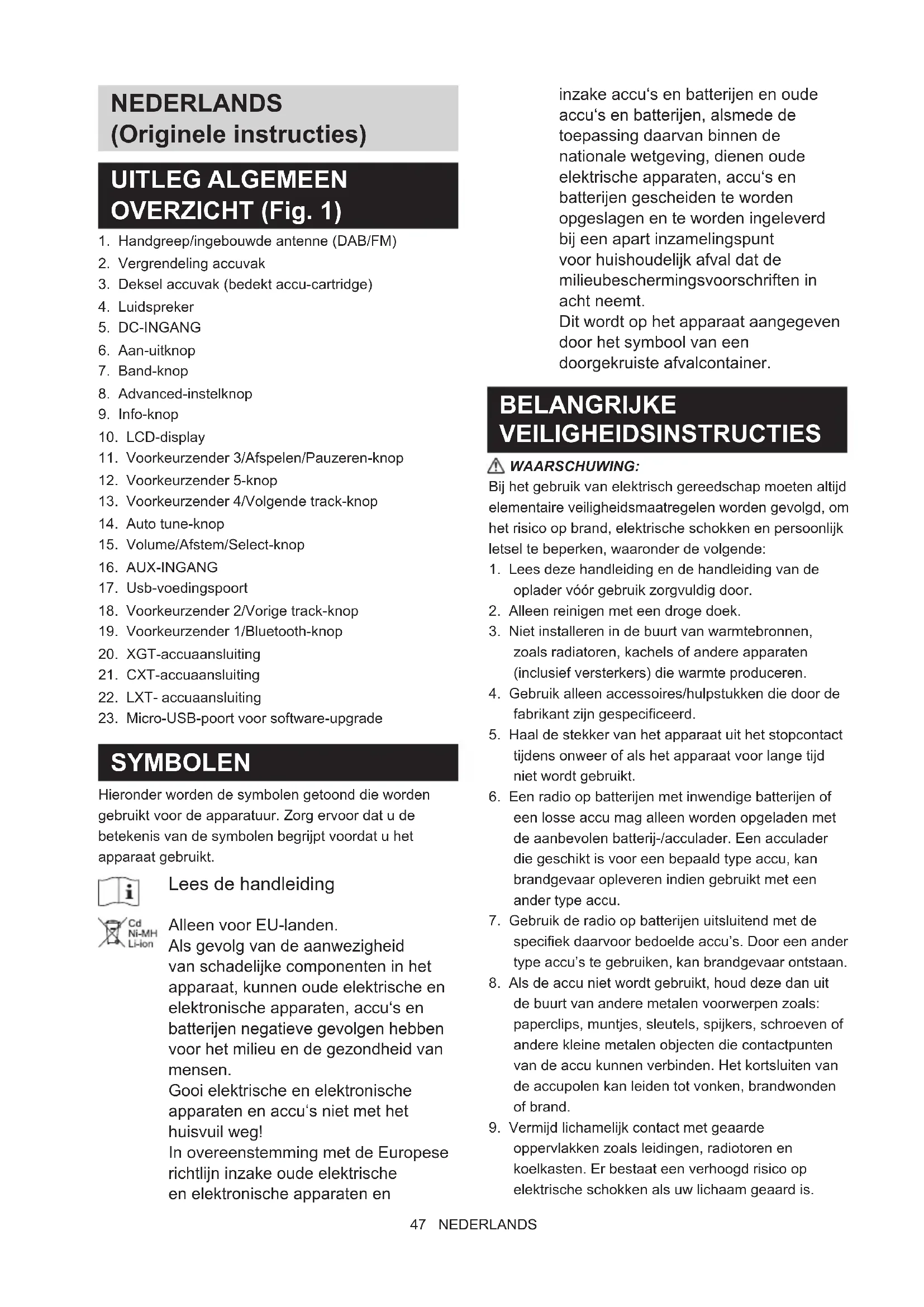 1. Lees, voordat u de accu gebruikt, alle instructies en