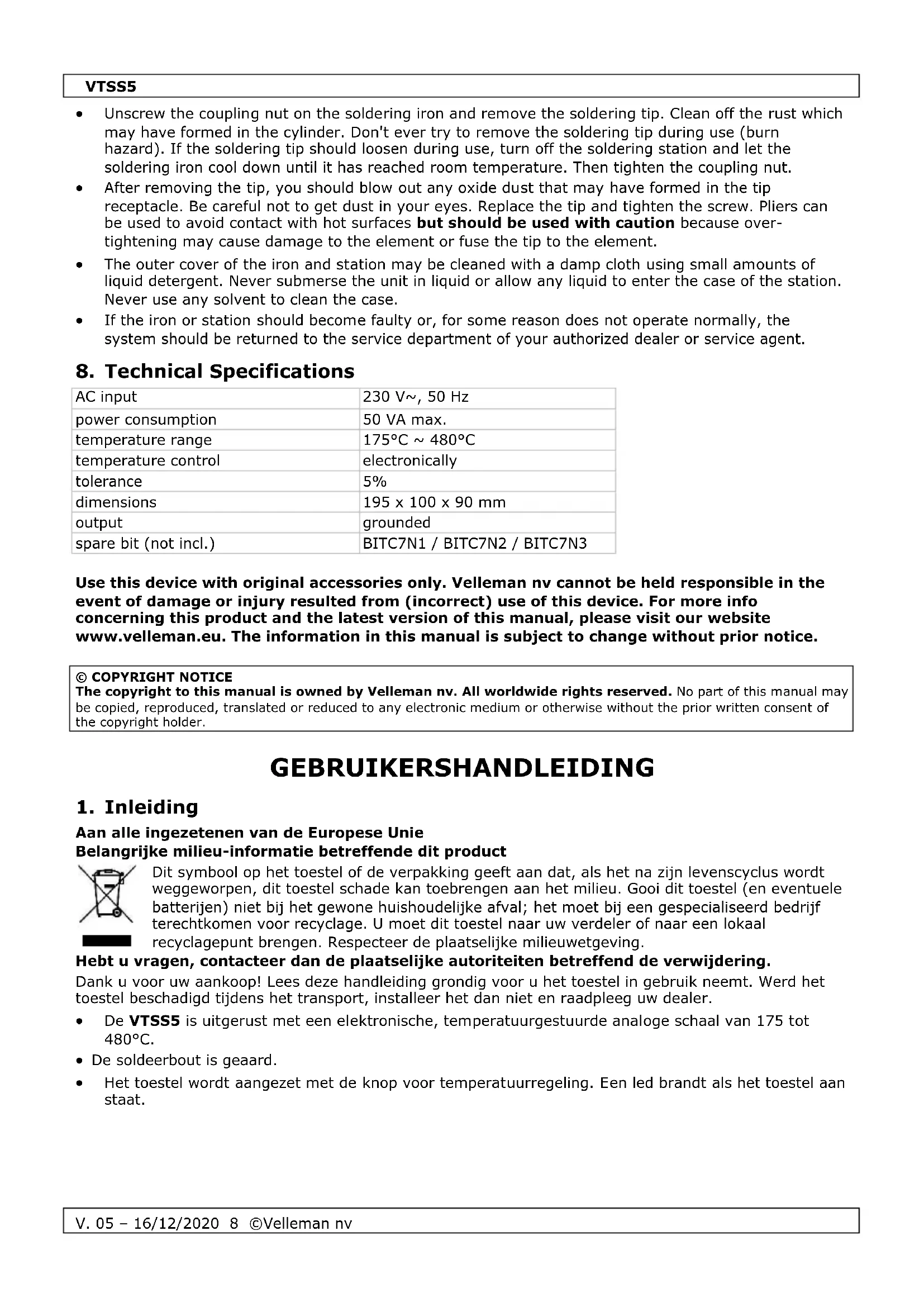 V. 05 – 16/12/2020 9 ©Velleman nv