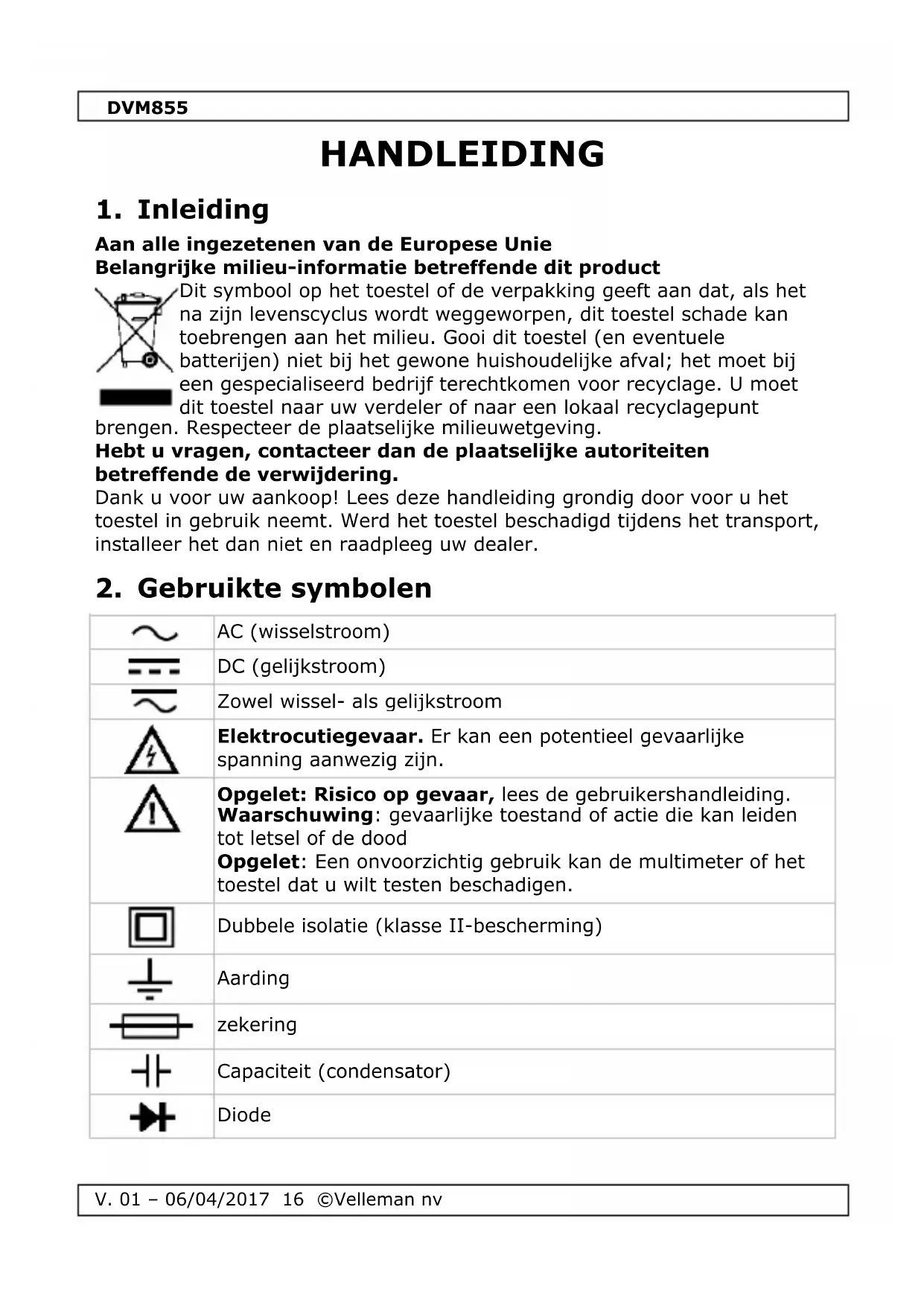 DVM855 - Multimeter VELLEMAN - Gratis gebruiksaanwijzing en handleiding