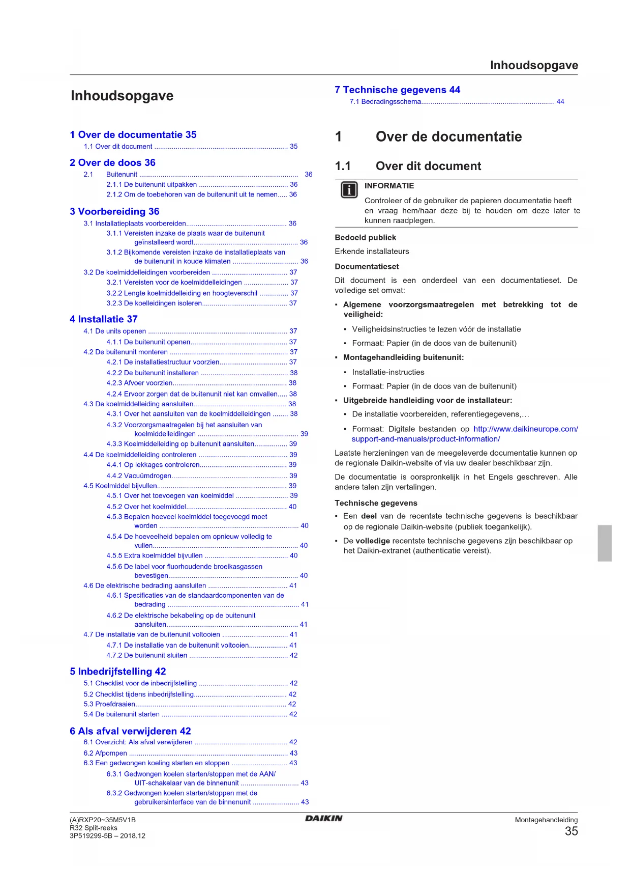 - De volledige recentste technische gegevens zijn beschikbaar op het Daikin-extranet (authenticatie vereist).2 Over de doos Montagehandleiding (A)RXP20~35M5V1BR32 Split-reeks3P519299-5B – 2018.12 2 Over de doos