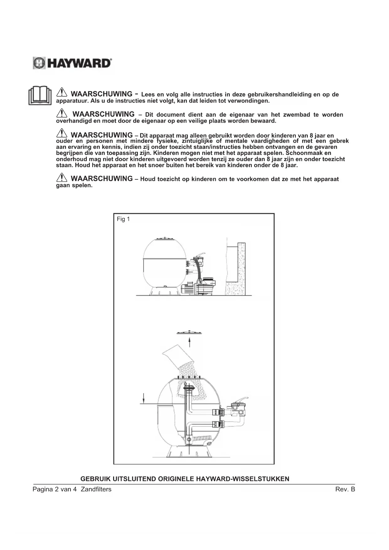 GEBRUIK UITSLUITEND ORIGINELE HAYWARD-WISSELSTUKKEN