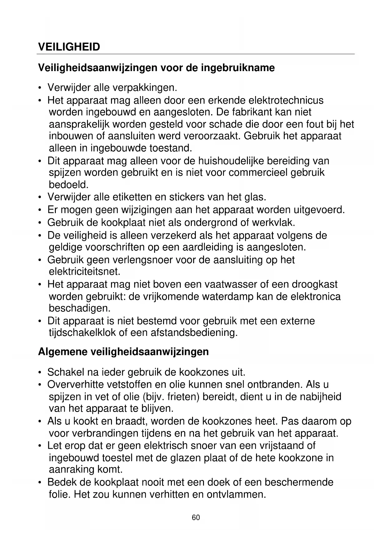 - Bedek de kookplaat nooit met een doek of een beschermende folie. Het zou kunnen verhitten en ontvlammen.61