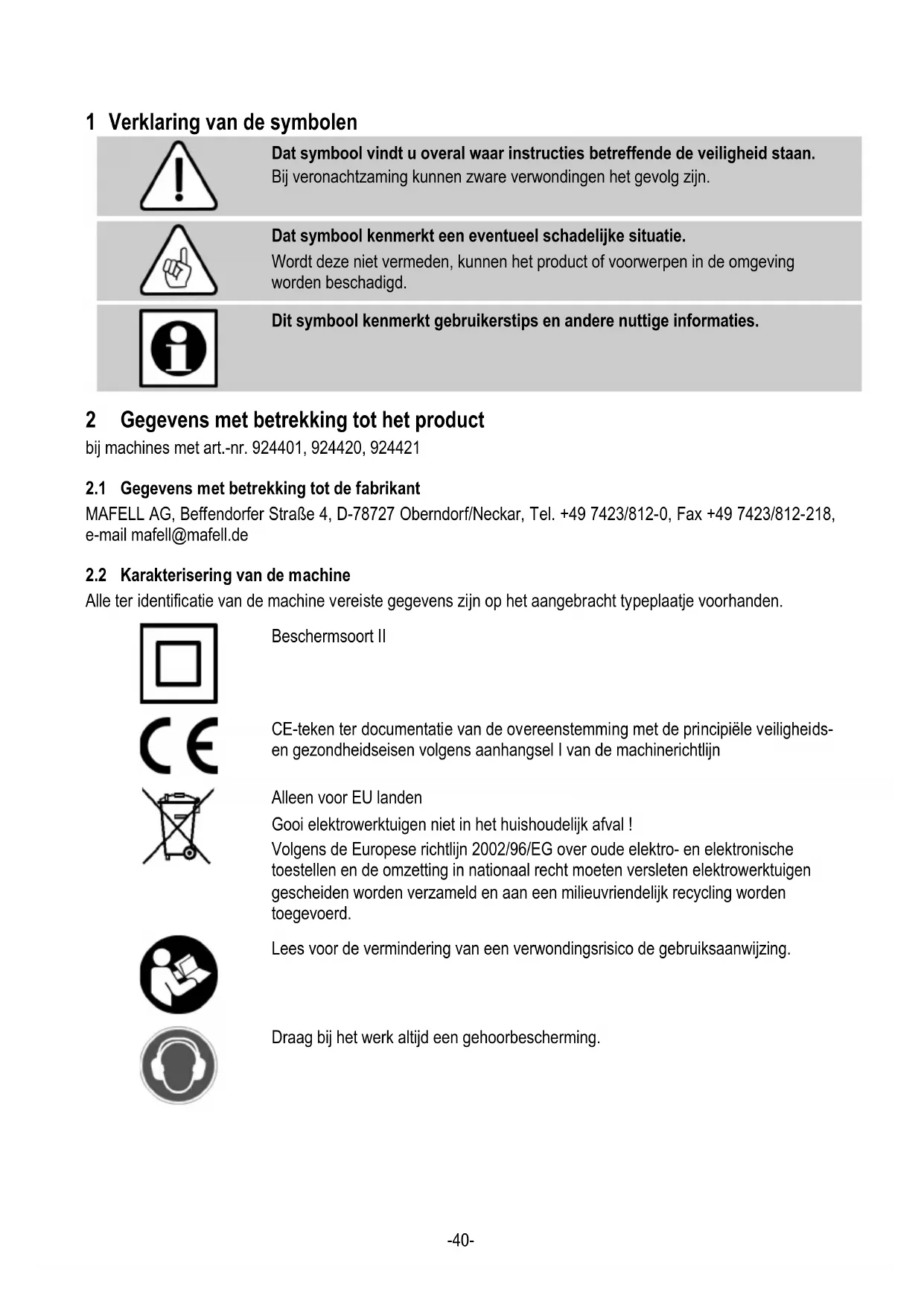 Dit symbool kenmerkt gebruikerstips en andere nuttige informaties. 2 Gegevens met betrekking tot het product bij machines met art.-nr. 924401, 924420, 924421