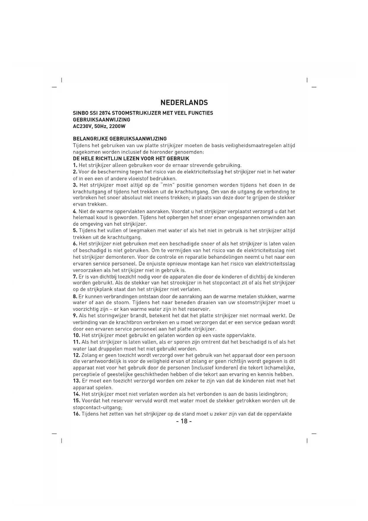 GEBRUIKSAANWIJZING SSI 2874 SINBO