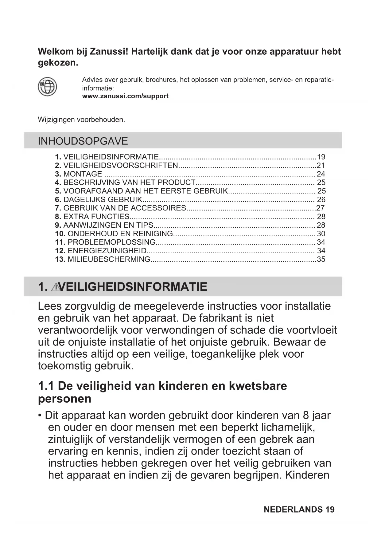 Welkom bij Zanussi! Hartelijk dank dat je voor once apparatuur heb gekozen.