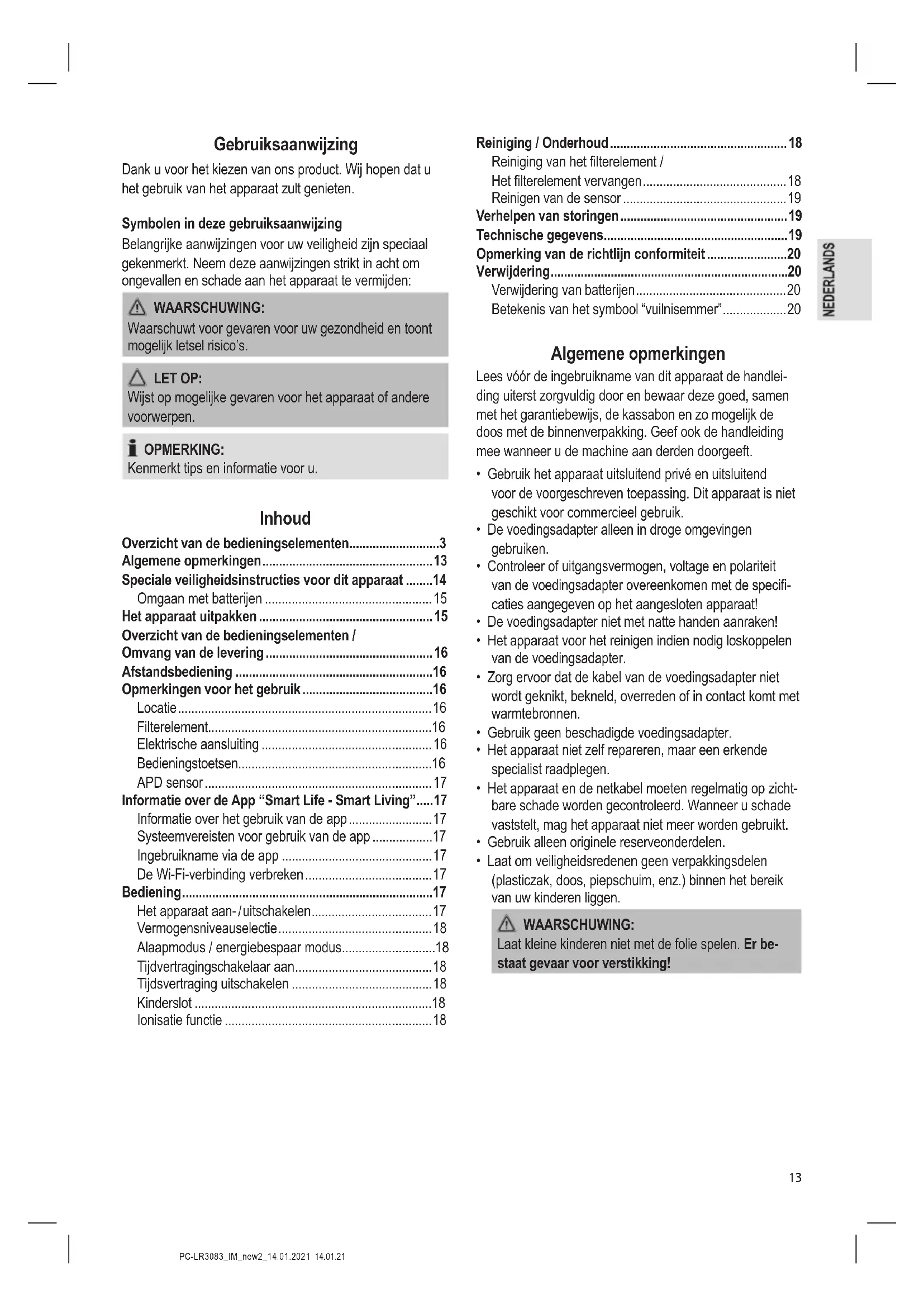 apparaat niet te worden gebruikt. Het apparaat dient onmiddellijk te worden teruggebracht naar de dealer.PC-LR3083_IM_new2_14.01.2021 14.01.21