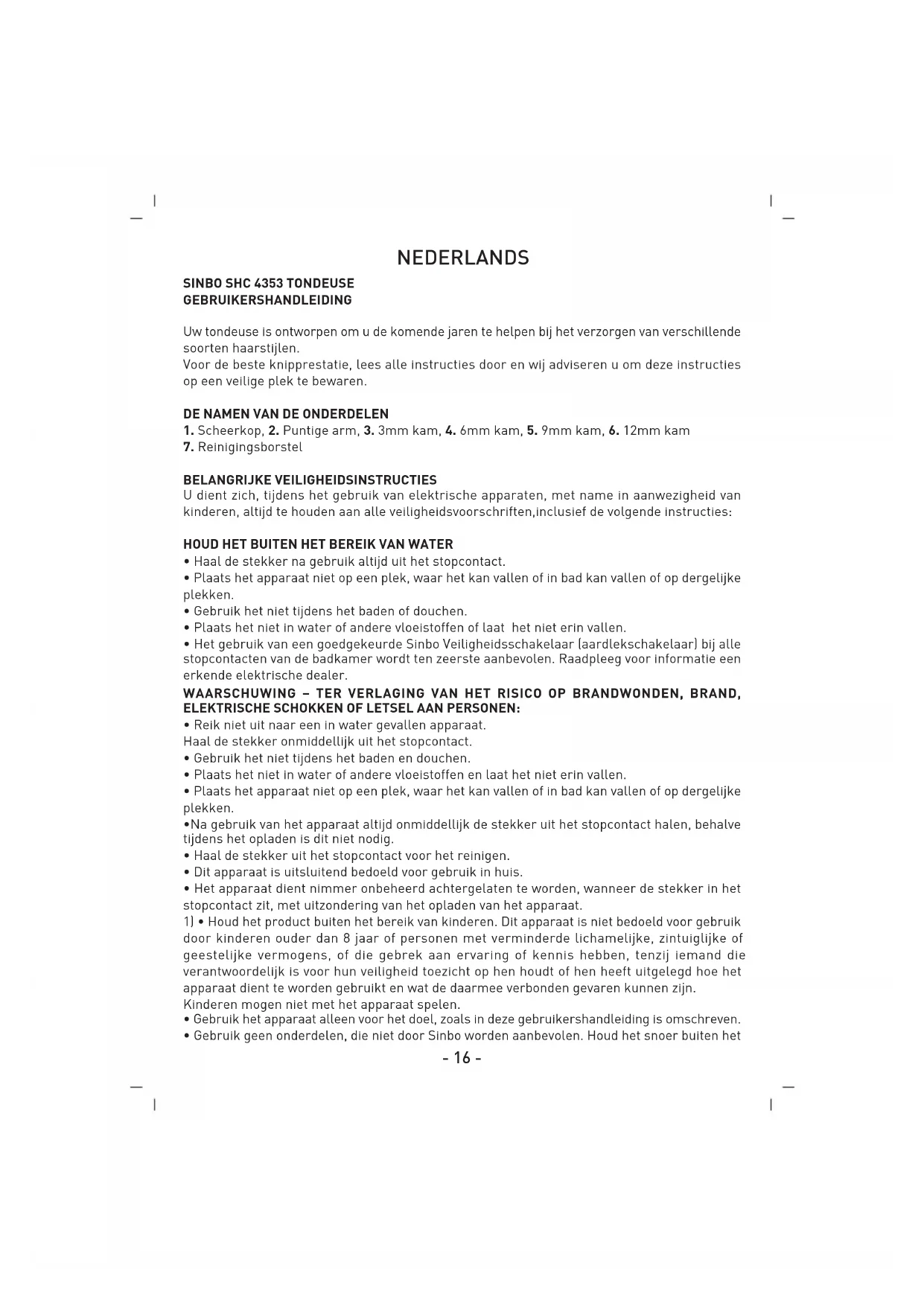GEBRUIKSAANWIJZING SHC 4353 SINBO