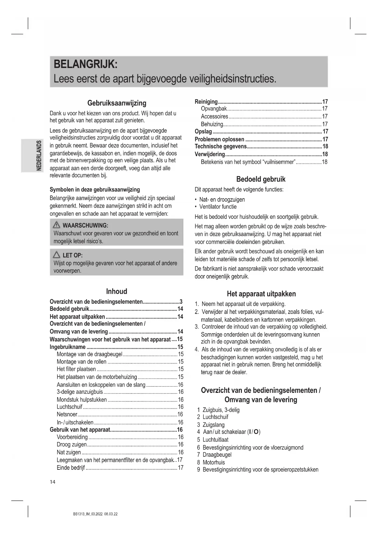 Lees de gebruiksaanwijzing en de apart bijgevoegde visilheidsinstructies zorgvuldig door voordat u dit apparaat in gebruik neemt. Bewaar deze documenten, inclusief het garantiebewijs, de kassabon en, indien möglichk, de doos met de binnenverpakking op een veilige plaats. Als u het apparaat aan een derde doorgeeft, voeg dan altijd alle relevante documenten bij.