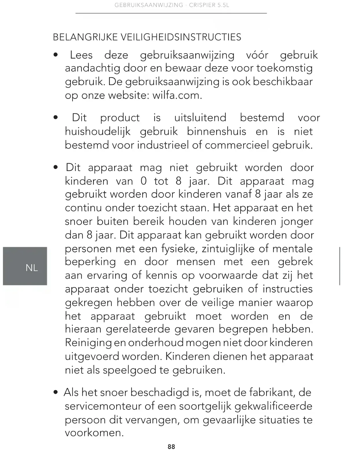 GEBRUIKSAANWIJZING Crispier 5.5 AF2B550 WILFA