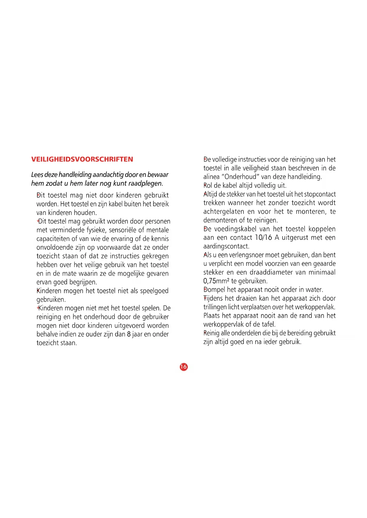 Kinderen mogen niet met het toestel spelen. De reiniging en het onderhoud door de gebruiker mogen niet door kinderen uitgevoerd worden behalve indien ze ouder zijn dan 8 jaar en onder toezicht staan.