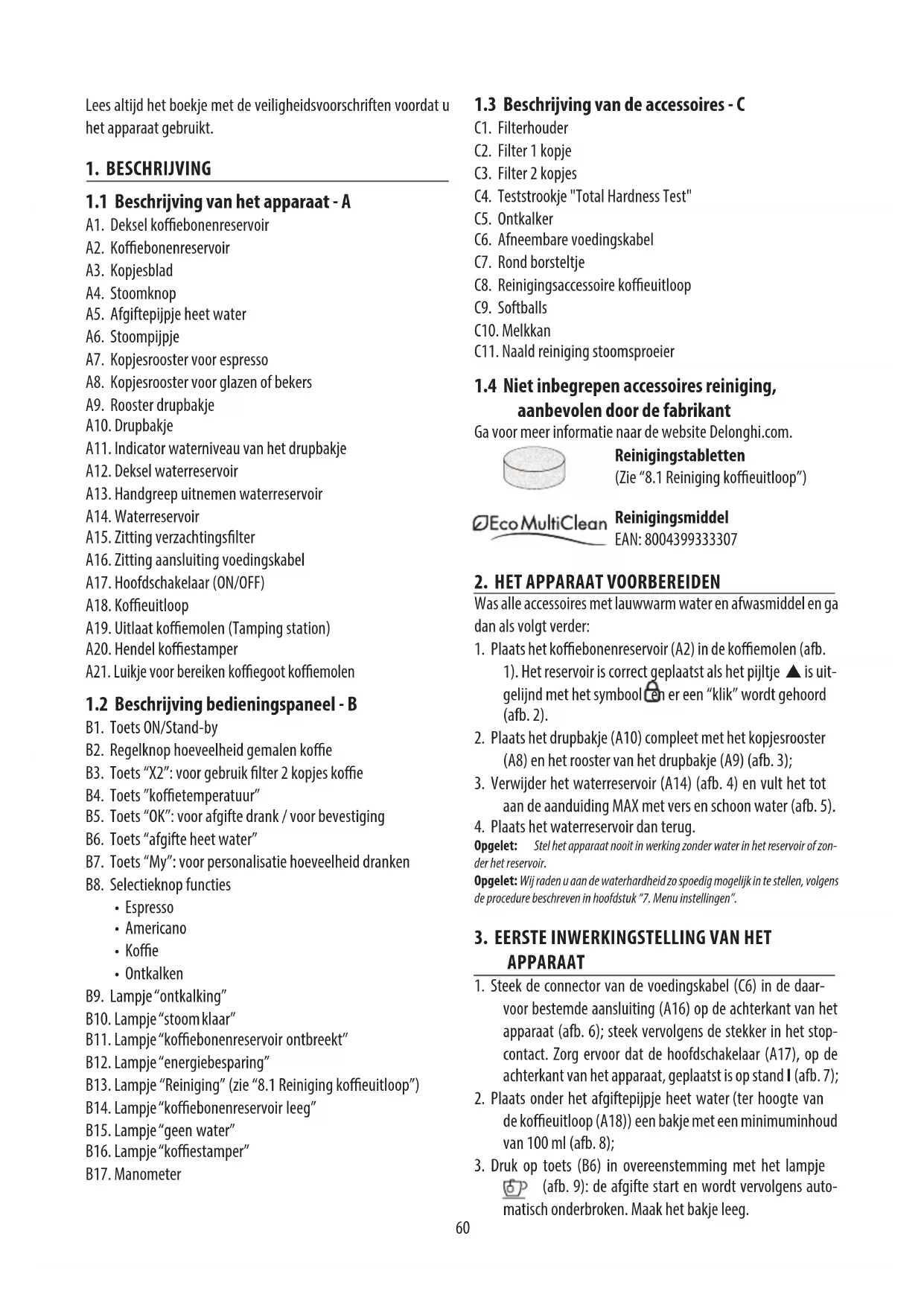Lees voorafgaand aan het gebruik de aanwijzingen en het etiket van de ontkaler (C5), zoals aangegeven op de verpakking van het product.
