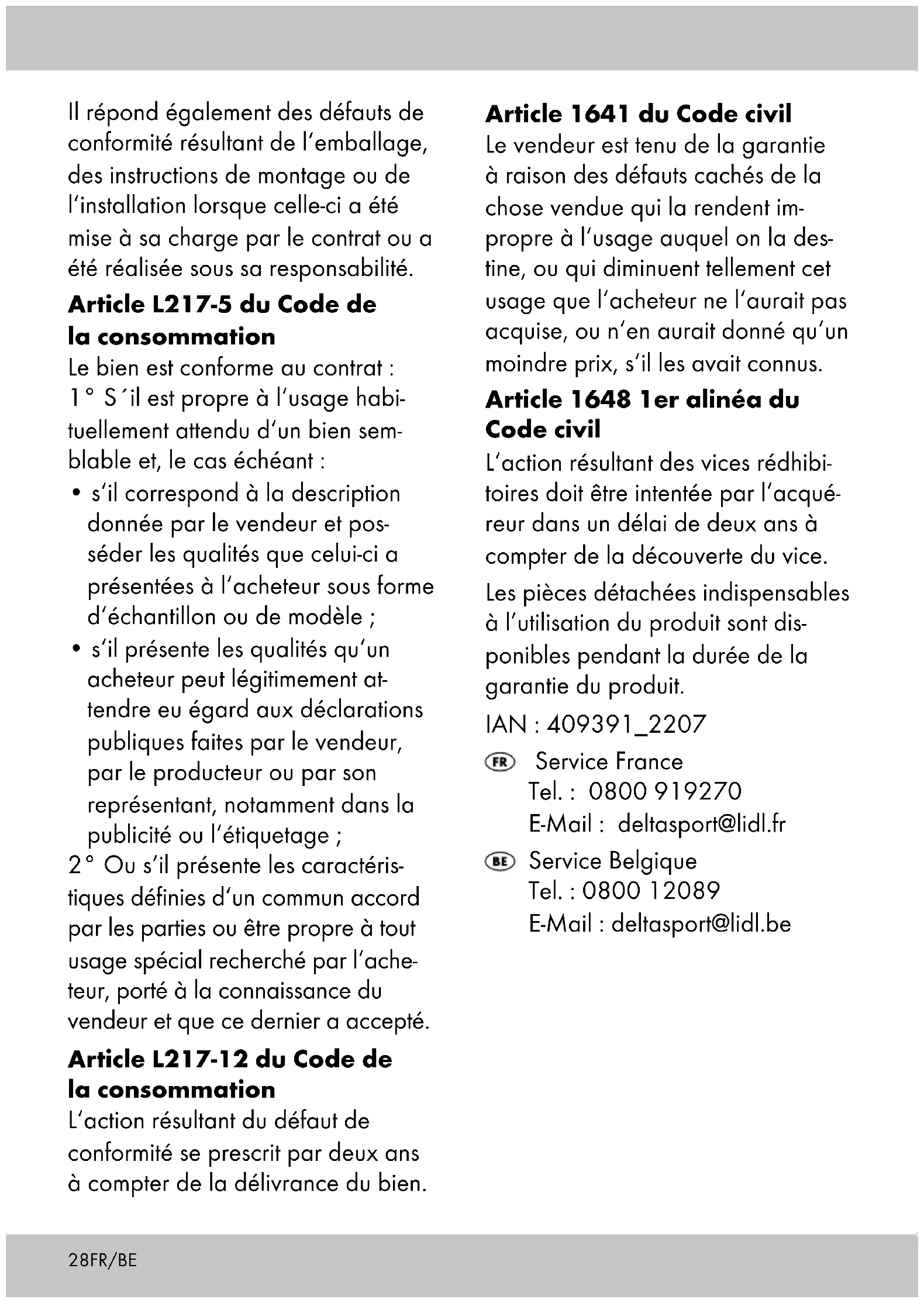 - Controleer het artikel voor elk gebruik op beschadigingen of slijtage. Het artikel mag alleen in goede staat worden gebruikt!30 NL/BE