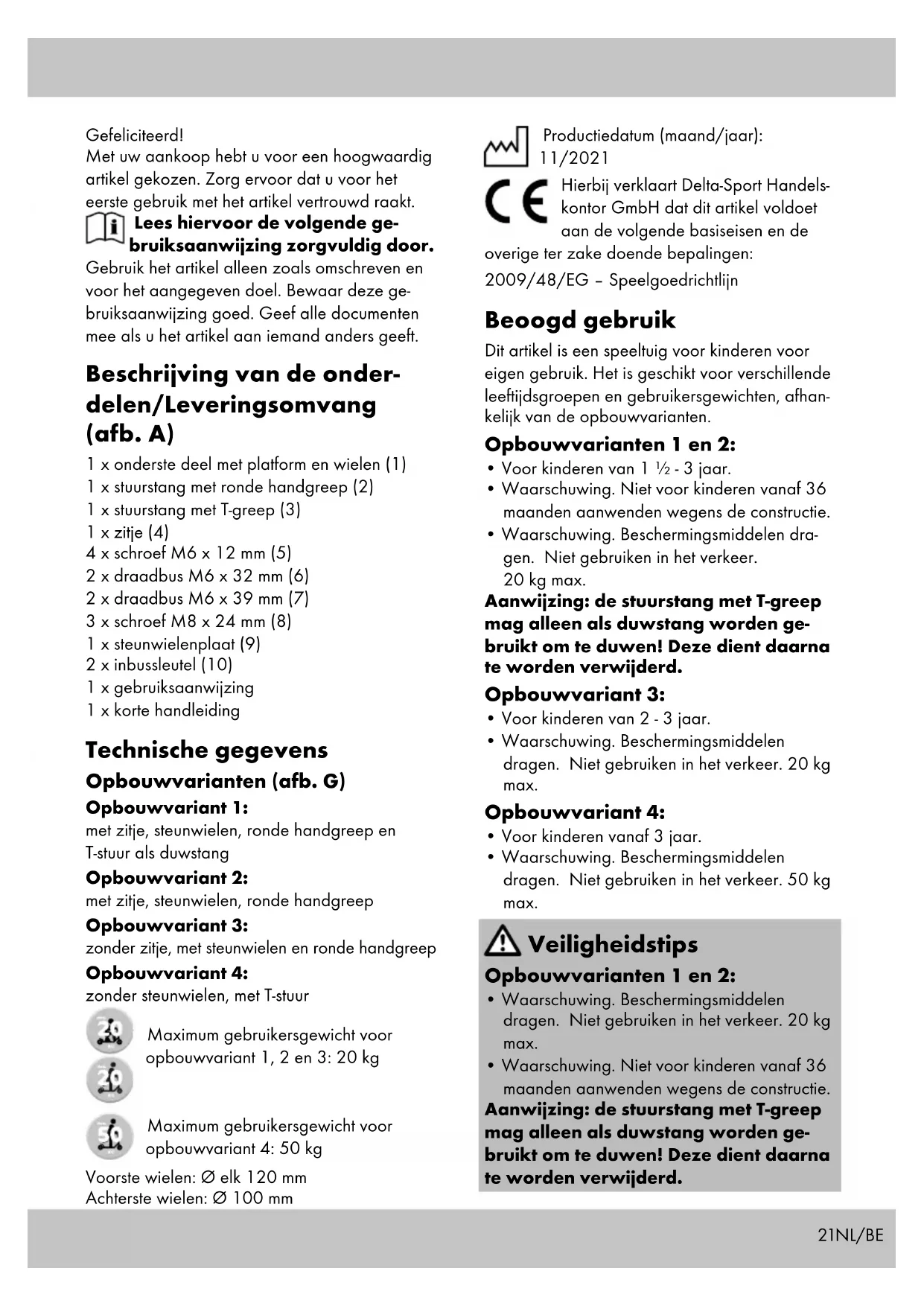 - Waarschuwing. Beschermingsmiddleslen dragen. Niet gebruiken in het verkeer. 20kg max.