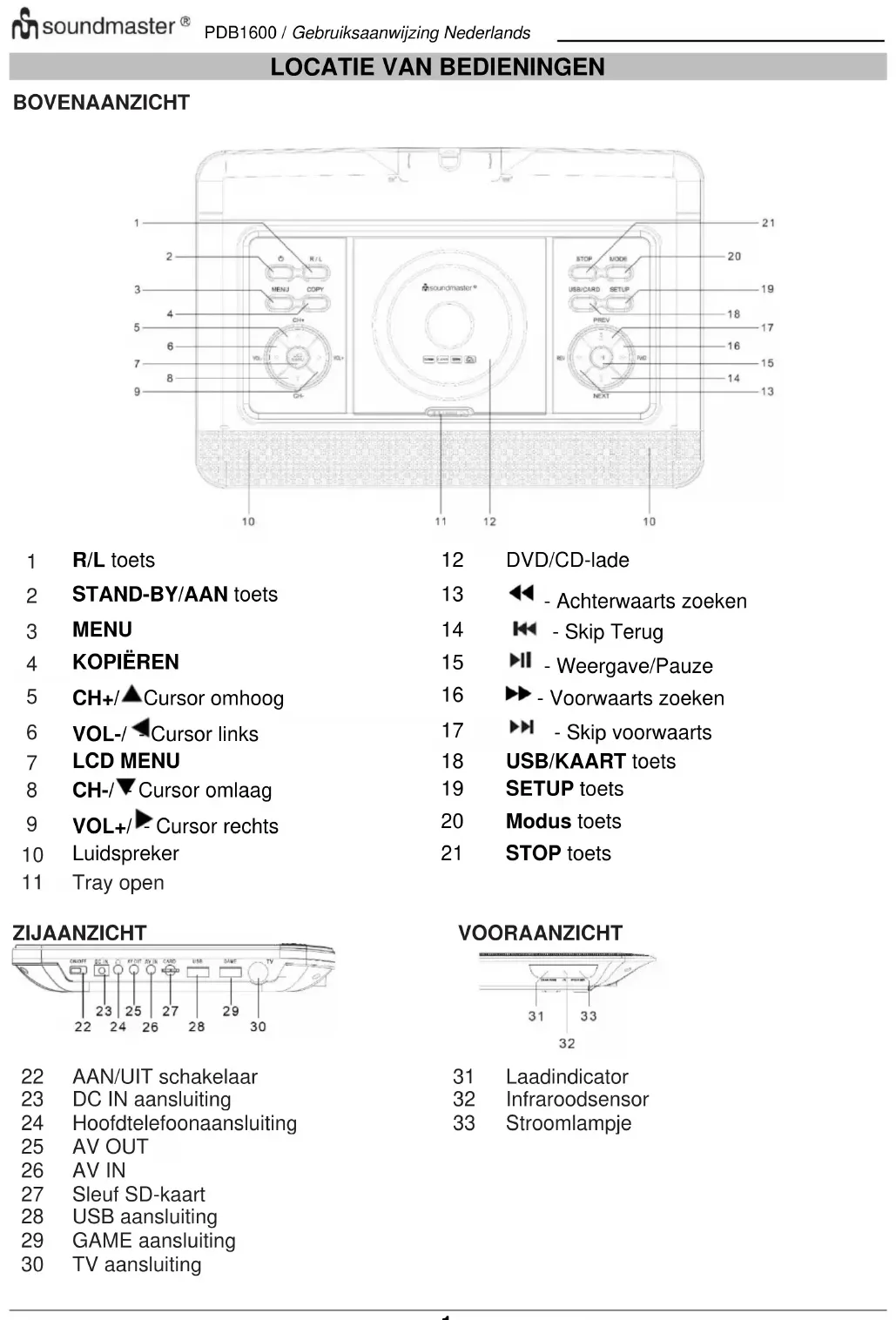 GEBRUIKSAANWIJZING PDB1600 Soundmaster