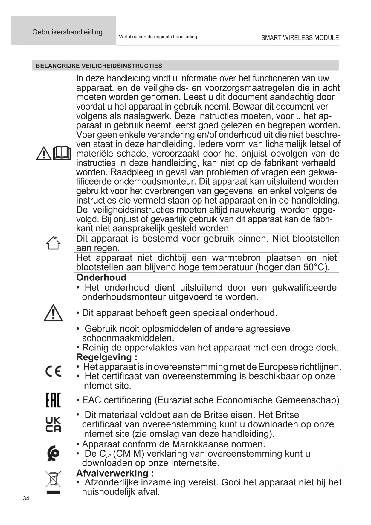 - De Cم (CMIM) verklaring van overeenstemming kunt u downloaden op onze internetsite. Afvalverwerking :
