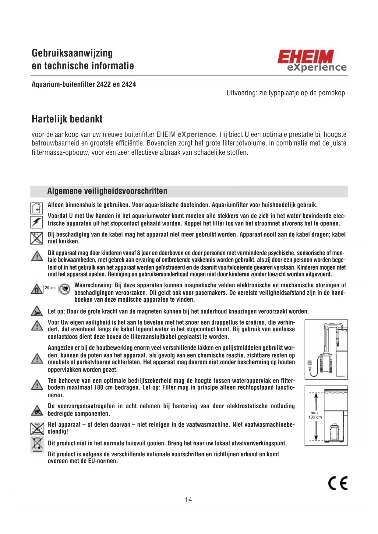 eXperience 150 - Aquariumfilter EHEIM - Gratis gebruiksaanwijzing en handleiding