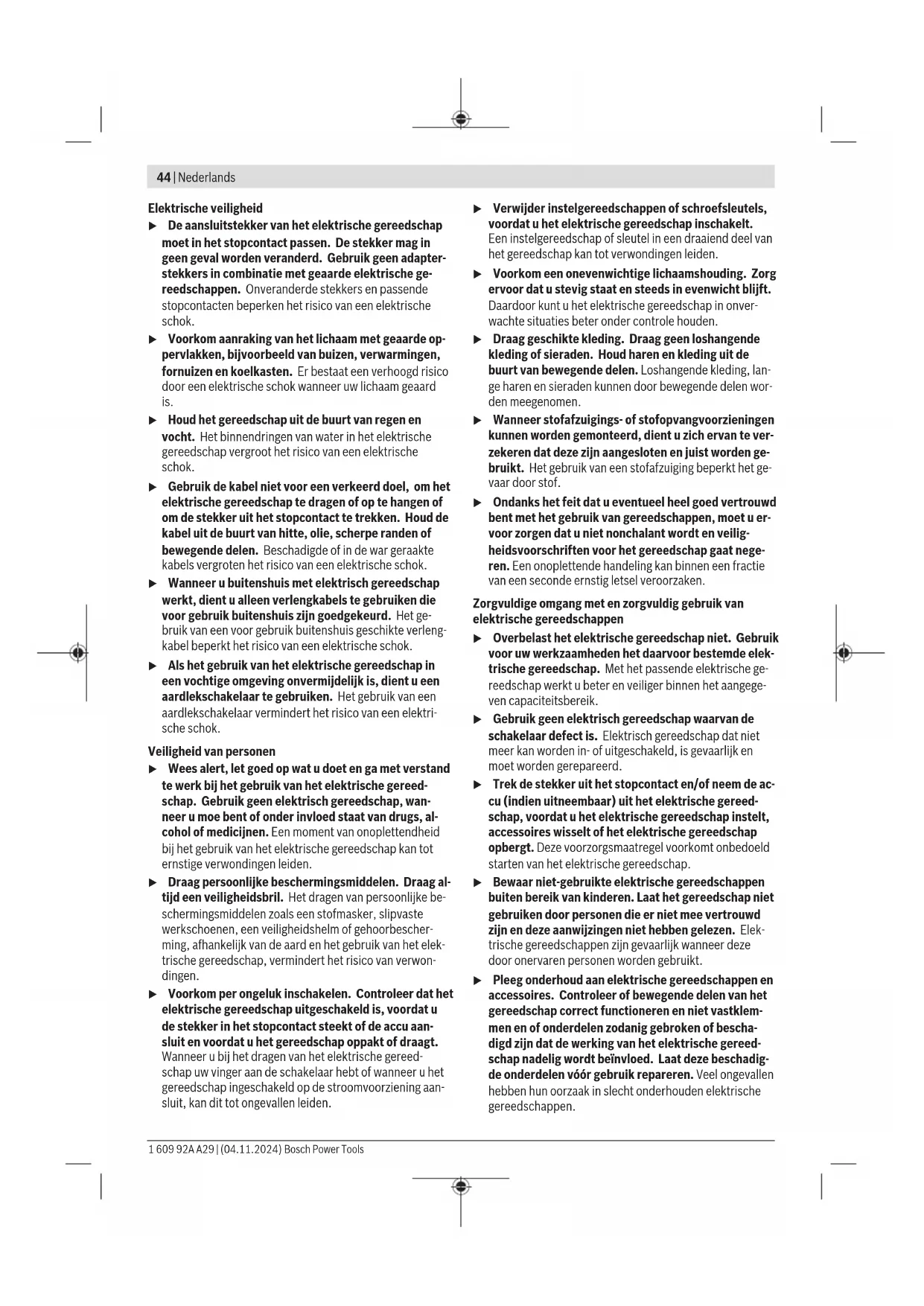 Gemeten bij 20−25°C met accu GBA 12V 3.0Ah. B) afhankelijk van gebruikte accu C) beperkt vermogen bij temperaturen <0°C Waarden kunnen afhankelijk van product variëren en onderhevig zijn aan toepassings- en omgevingsvoorwaarden. Meer informatie vindt u op www.bosch-professional.com/wac. Informatie over geluid en trillingen Geluidsemissiewaarden vastgesteld conformEN62841-2-4. Het A-gewogen geluidsdrukniveau van het elektrische ge- reedschap bedraagt typisch74dB(A). Onzekerheid K=3dB. Het geluidsniveau bij het werken kan de aangege- ven waarden overschrijden. Draag gehoorbescherming! Totale trillingswaarden a