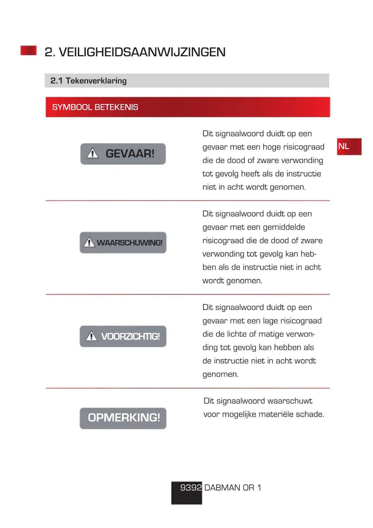 2. VEILIGHEIDSAANWIJZINGEN 2. VEILIGHEIDSAANWIJZINGEN