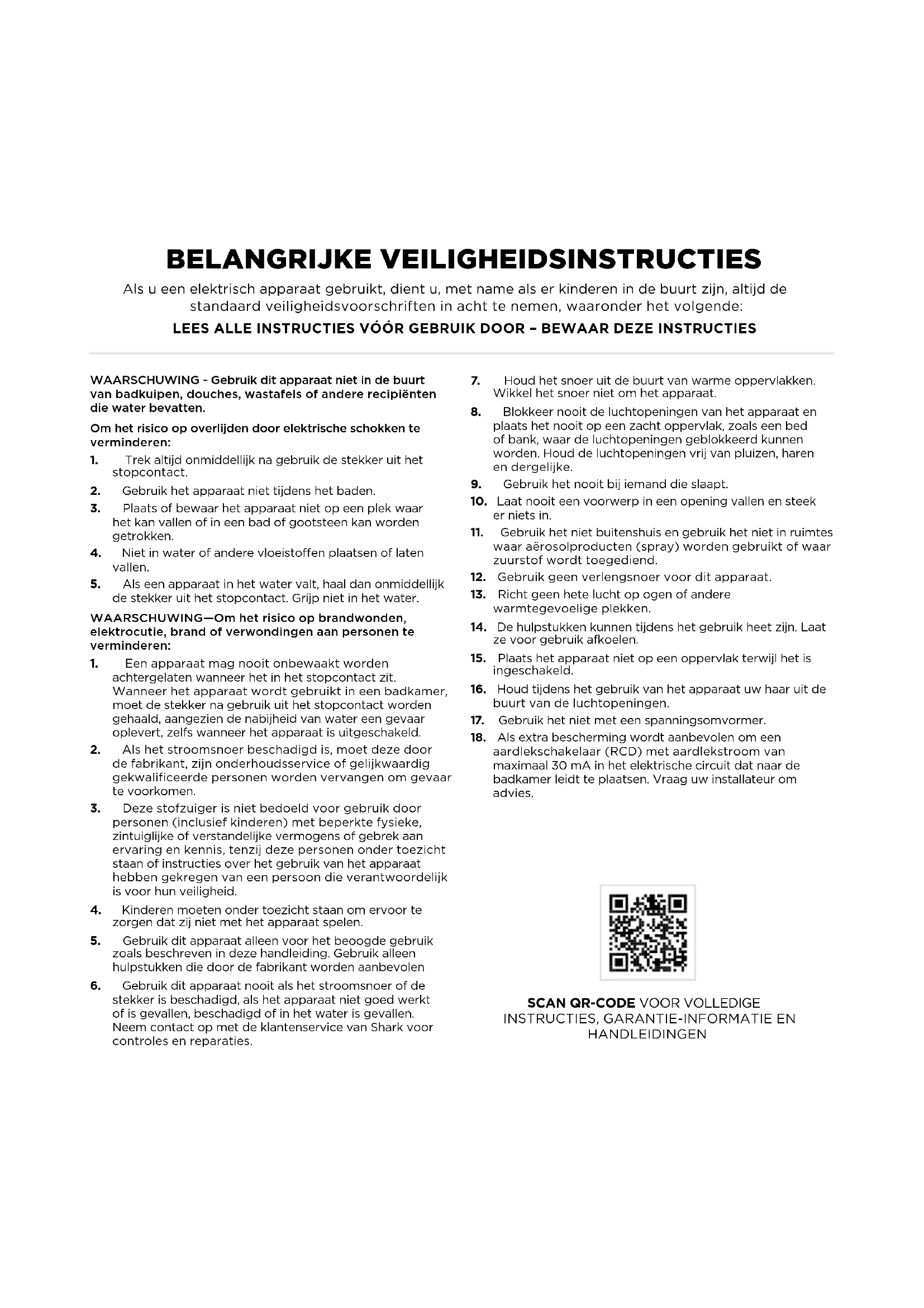 HANDLEIDINGENAls een klant een product in Europa koopt, kan hij/zij aanspraak maken op juridische rechten t.a.v. de kwaliteit van het product (uw “juridische rechten”). U kunt uw winkelier aan deze rechten houden. Bij Shark zijn we zo overtuigd van de kwaliteit van onze producten, dat wij u een extra fabrieksgarantie geven van maximaal twee jaar (wanneer u uw product bij Shark registreert). Deze voorwaarden hebben alleen betrekking op onze fabrieksgarantie. Uw wettelijke rechten blijven ongewijzigd. Let op: de garantie van twee jaar is beschikbaar in alle landen van de EU. De onderstaande voorwaarden beschrijven de vereisten en omvang van onze garantie. Deze hebben geen invloed op uw wettelijke rechten of de verplichtingen van de verkoper van het product en uw overeenkomst met de verkoper. Shark®-batterijgarantie Uw Shark haardroger vergt een flinke investering. Uw nieuwe haardroger moet het zo lang mogelijk goed doen. De garantie bij het apparaat is een belangrijke indicator en laat zien hoeveel vertrouwen de fabrikant in zijn product heeft en in de kwaliteit hiervan. Ieder apparaat van Shark wordt geleverd met garantie op de onderdelen en werkzaamheden. De informatielijn van onze klantenservice (+44 (0800) 862 0453) is bereikbaar van maandag t/m vrijdag van 09.00 tot