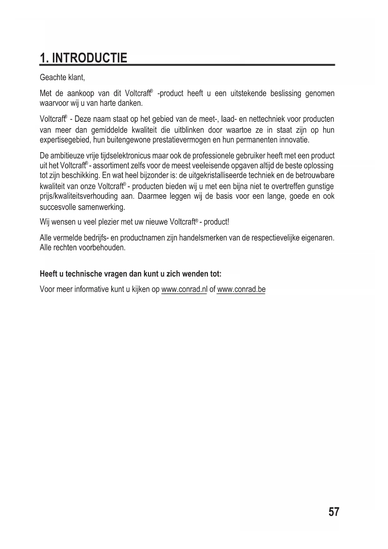 - product! Alle vermelde bedrijfs- en productnamen zijn handelsmerken van de respectievelijke eigenaren. Alle rechten voorbehouden. Heeft u technische vragen dan kunt u zich wenden tot: Voor meer informative kunt u kijken op www.conrad.nl of www.conrad.be58