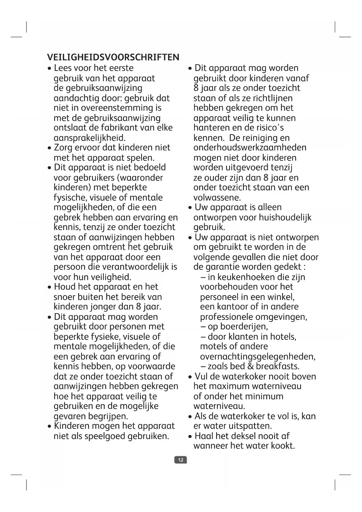 - De garantie dekt geen waterkokers die niet of slecht werken door het niet regelmatig ontkalken van het apparaat.