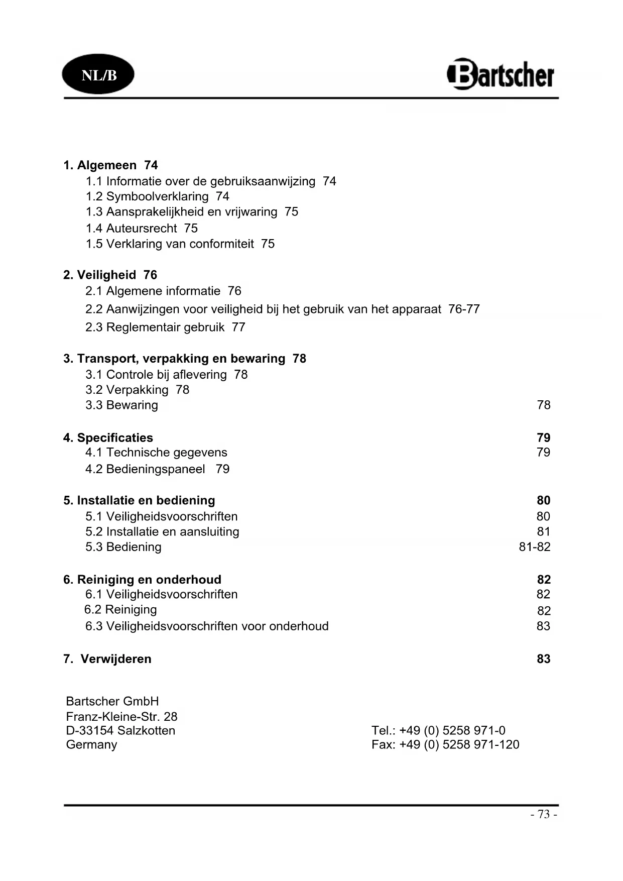 6.1 Veiligheidsvoorschriften 82