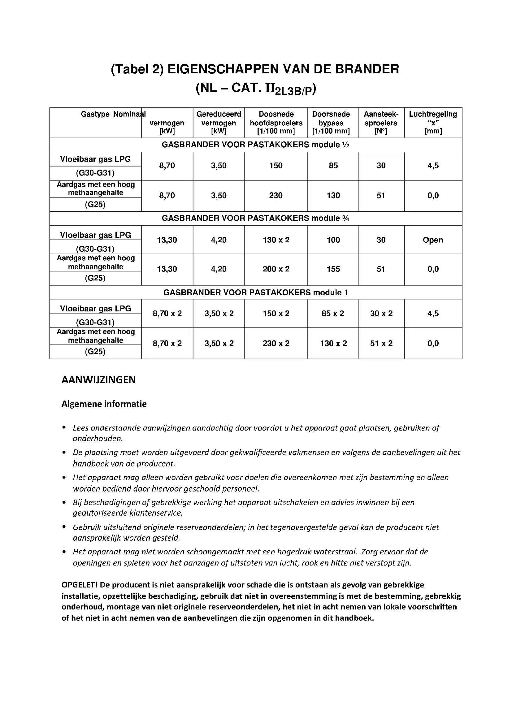 cookers) \ Aanwijzingen voor het gebruik (gaspastakokers)