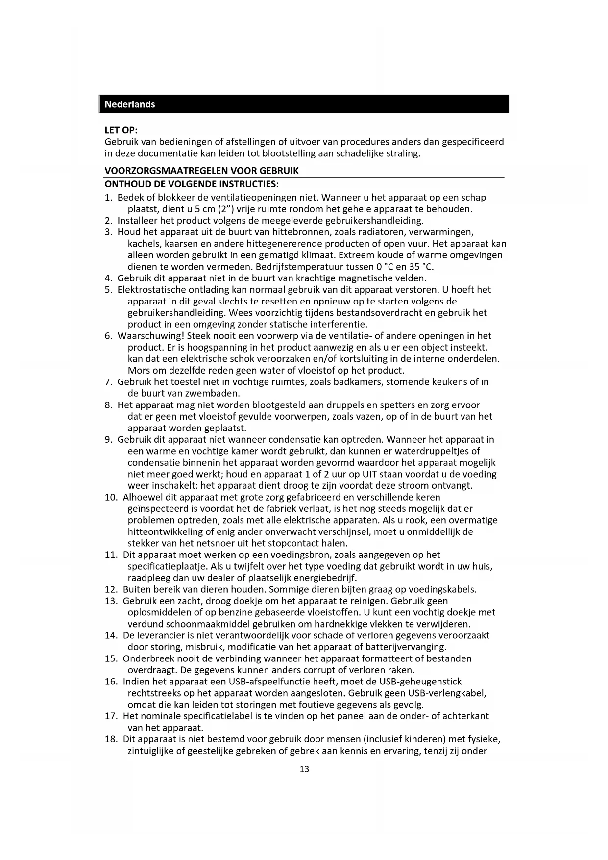 16. Indien het apparaat een USB-afspeelfunctie heeft, moet de USB-geheugenstick