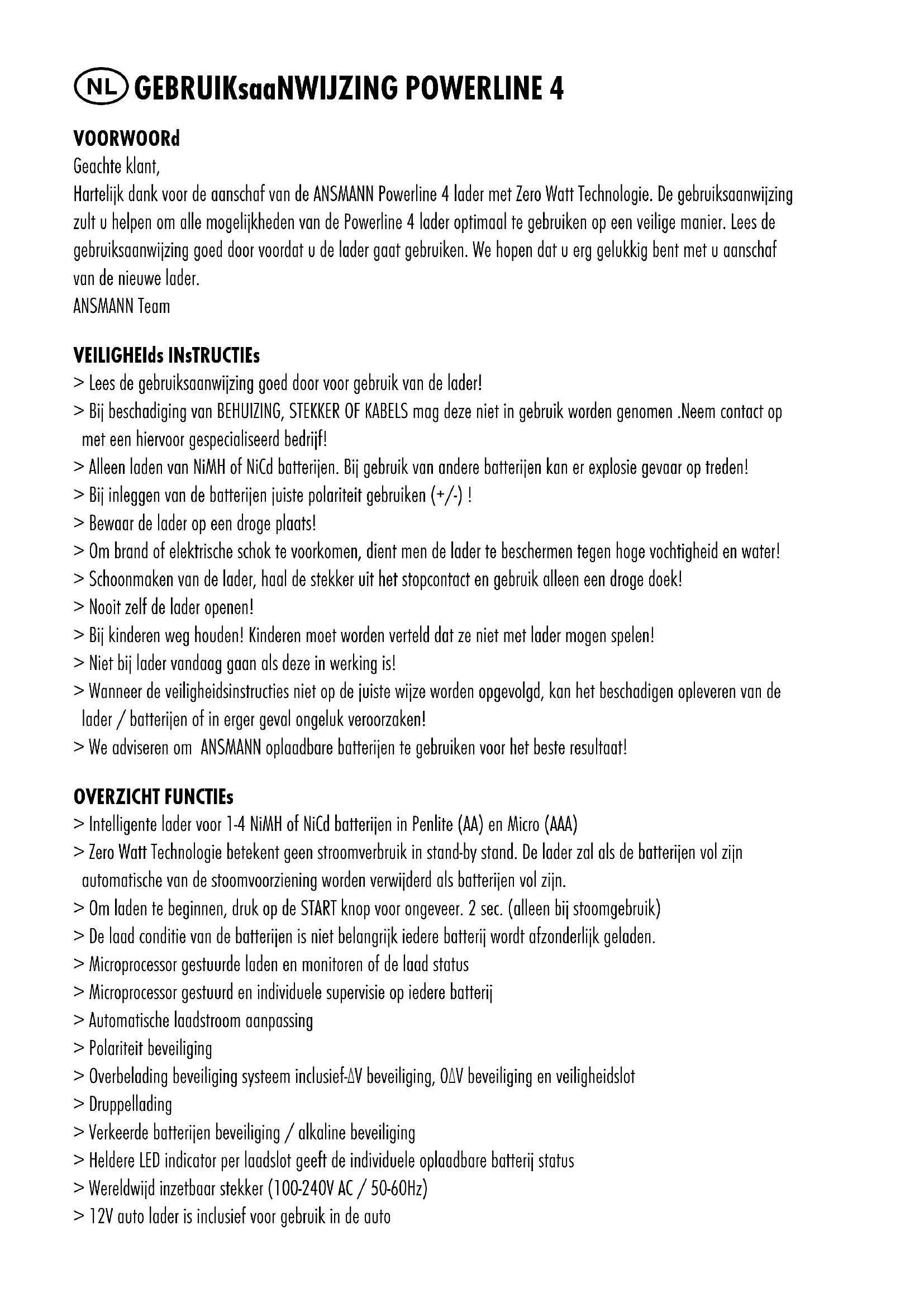 Powerline 4 Zero Watt - Batterijlader ANSMANN - Gratis gebruiksaanwijzing en handleiding