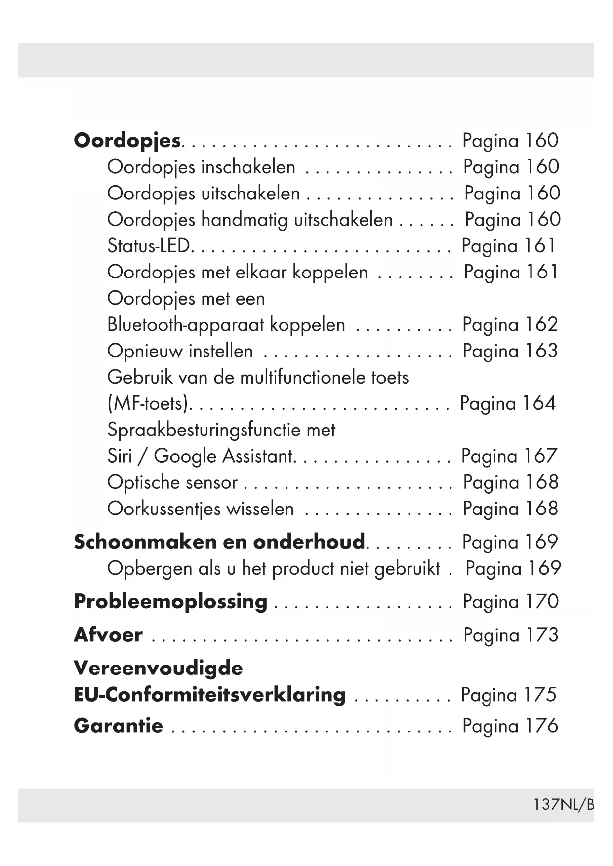 Oordopjes handmatig uitschakelen . . . . . . Page 160