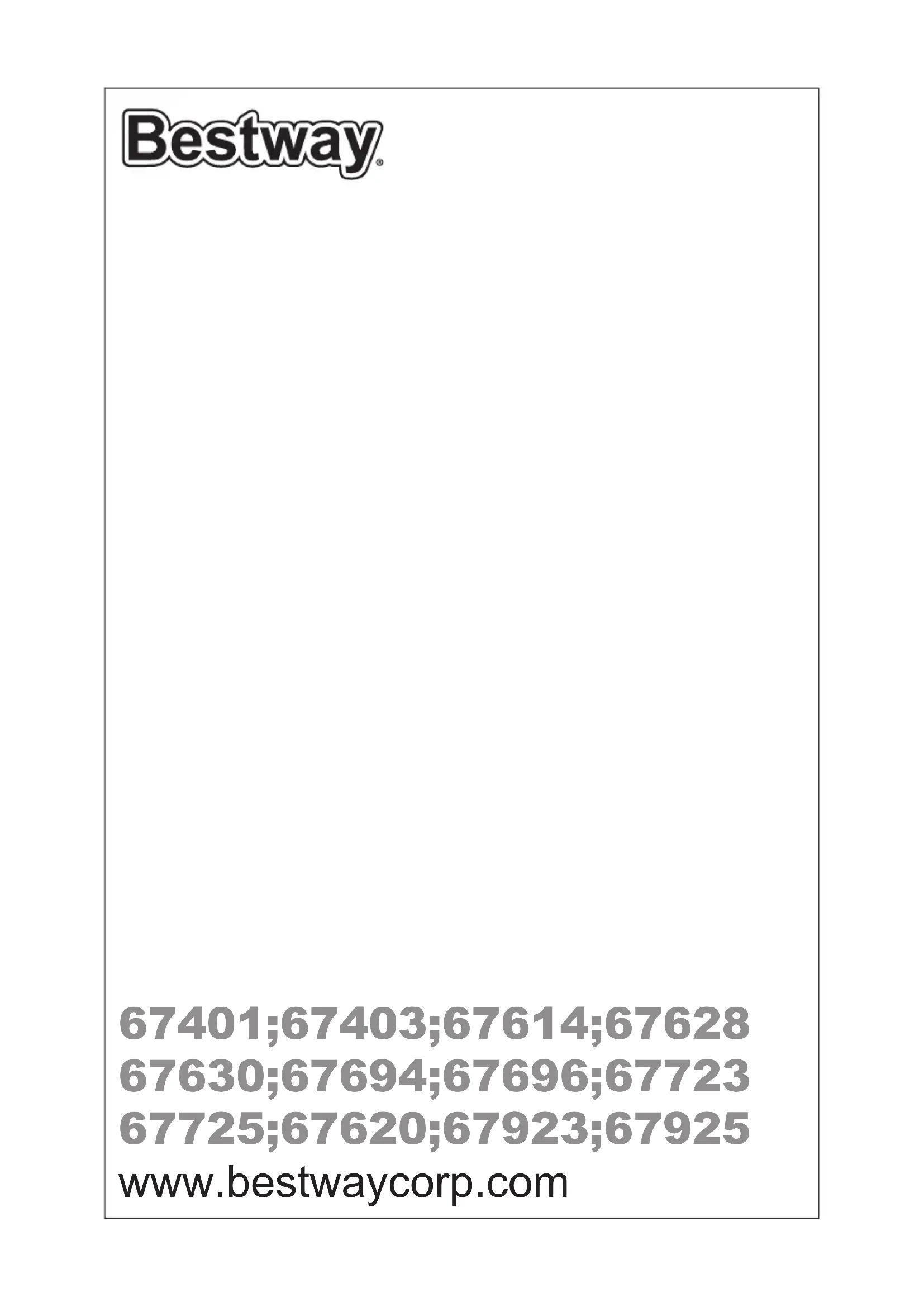 Afgedankte elektrische apparaten mogen niet worden weggegooid bij het huisafval. Recycle als daar faciliteiten voor bestaan. Vraag advies over recyclen aan uw plaatselijke overheid of aan de winkelier. 67401;67403;67614;67628 67630;67694;67696;67723 67725;67620;67923;67925 www.bestwaycorp.com2 OWNER'S MANUAL
