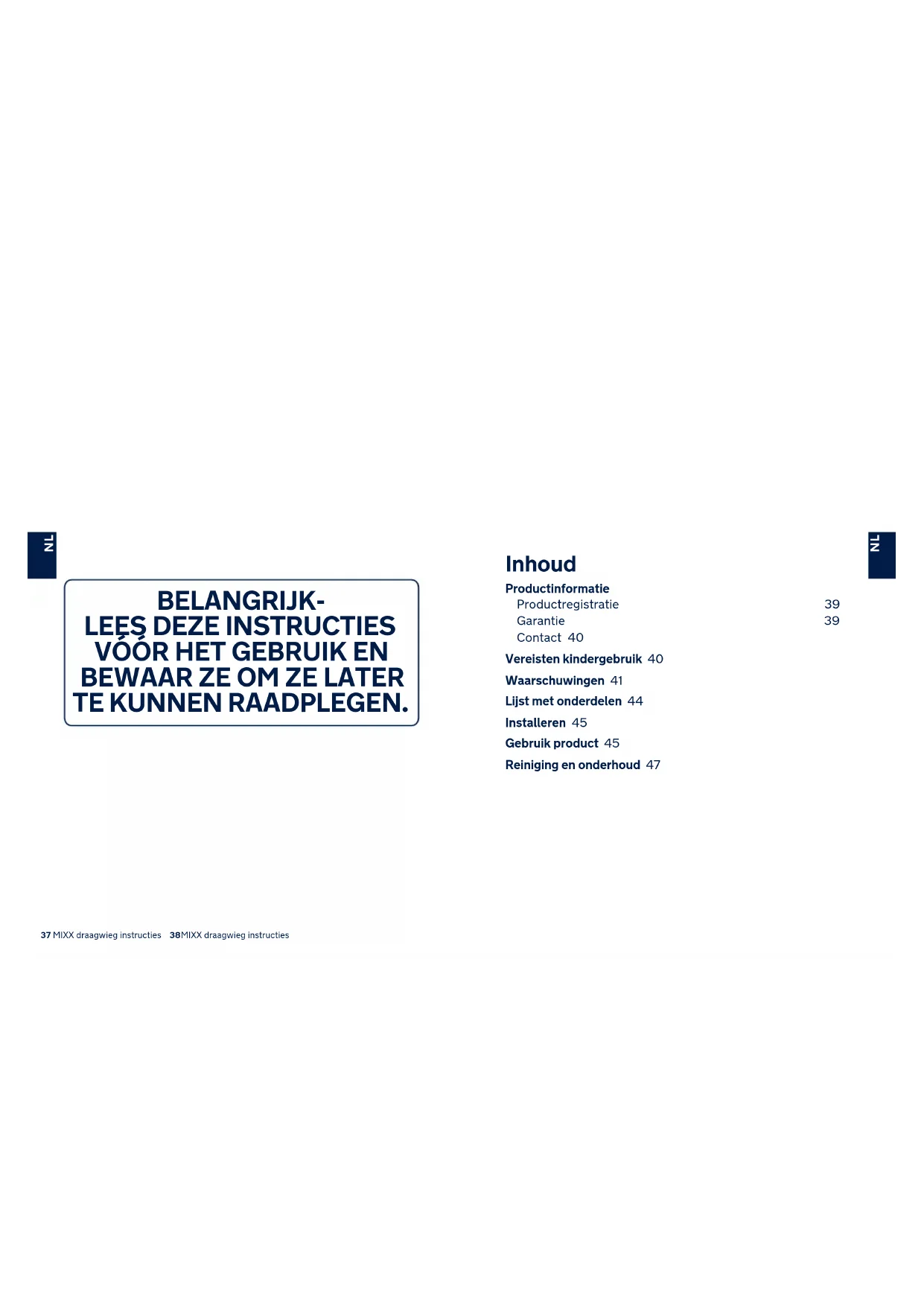 TE KUNNEN RAADPLEGEN.39 MIXX draagwieg instructies 40MIXX draagwieg instructies