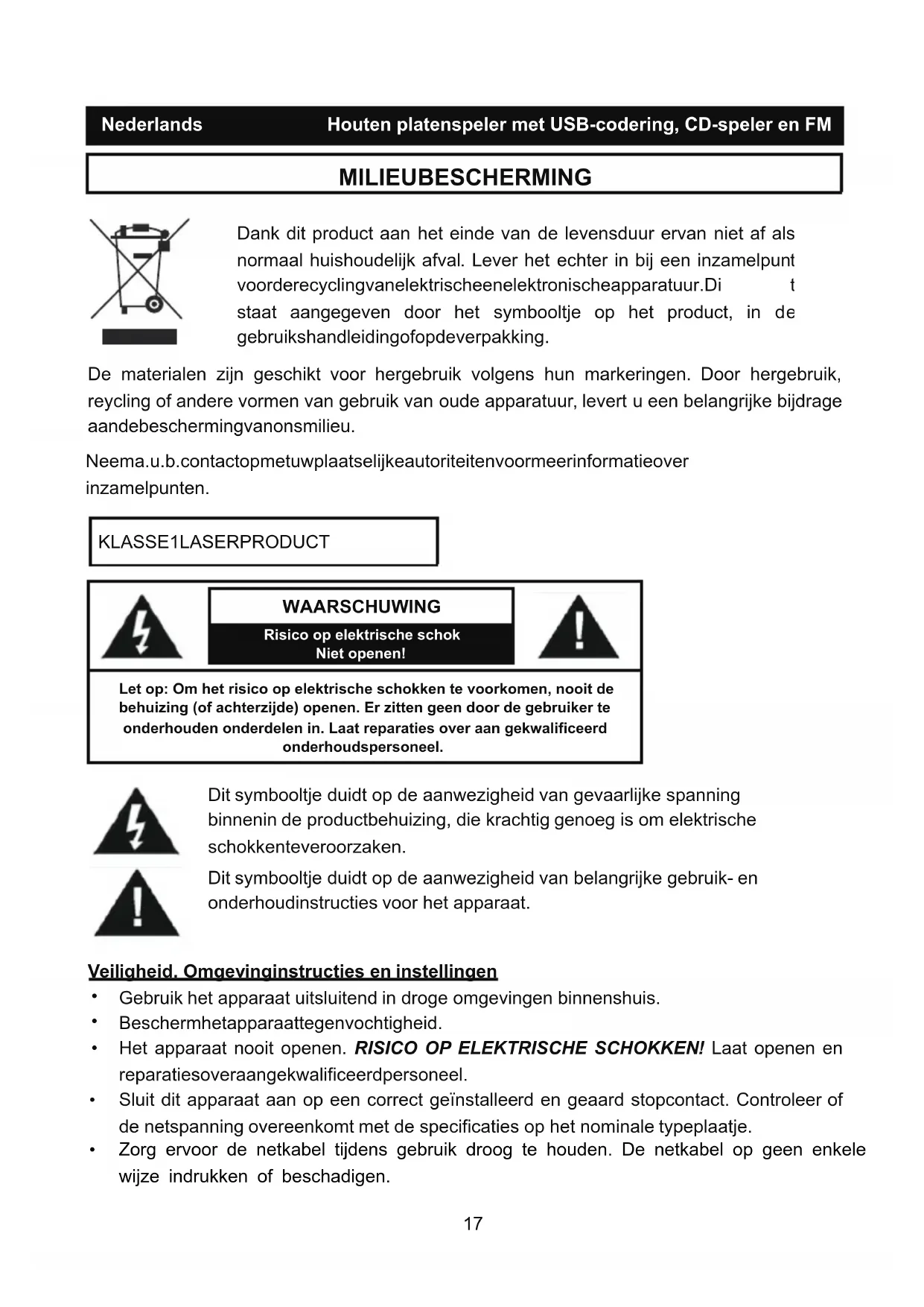 - Het apparaat nooit openen. RISICO OP ELEKTRISCHE SCHOKKEN! Laat openen en reparationsveraangekwalificeerdpersonael.