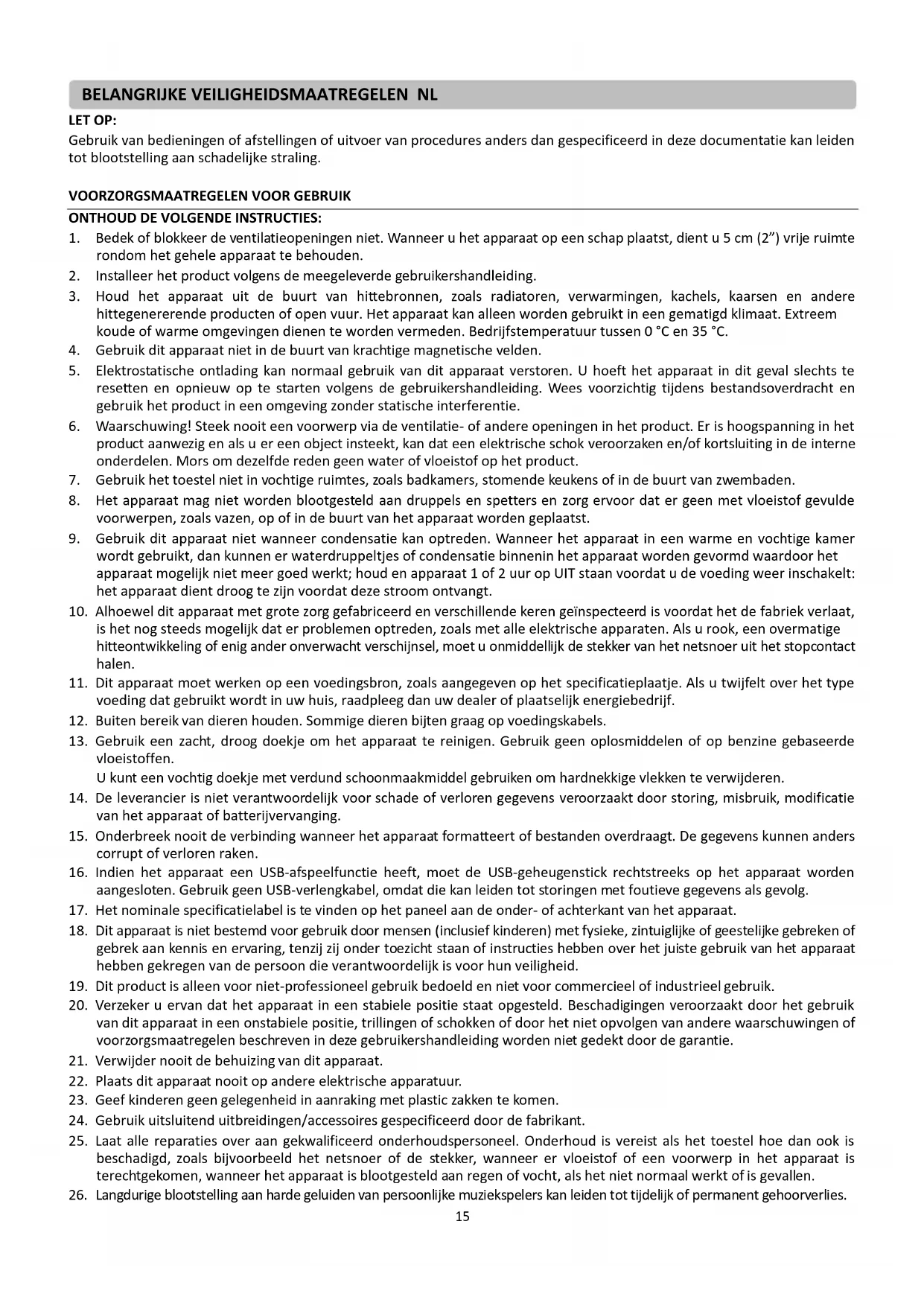 19. Dit product is alleen voor niet-professioneel gebruik bedoeld en niet voor commercieel of industrieel gebruik.